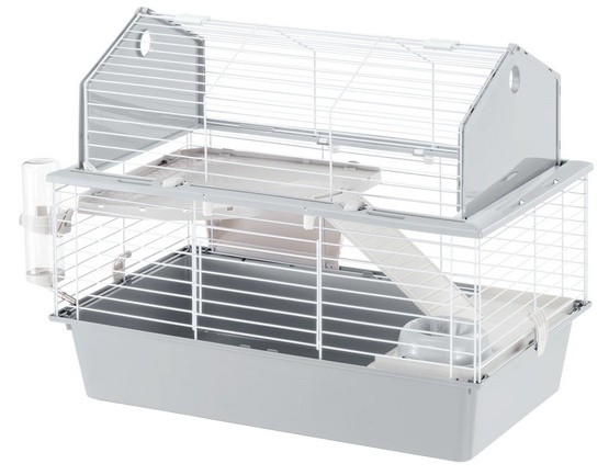 Klatka jest przewidziana dla królików lub większych gryzoni, dlatego pozwala odchylić sufit - duży otwór daje łatwy dostęp do pupila. Ponadto oddzielana kuweta pozwala również łatwo utrzymać higienę w klatce.