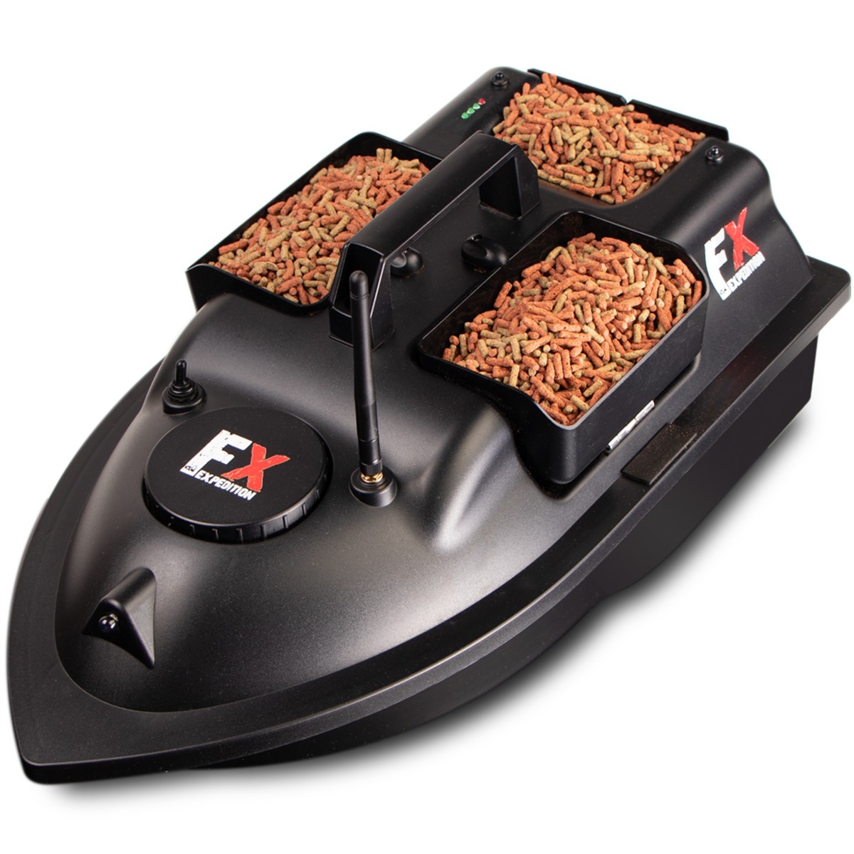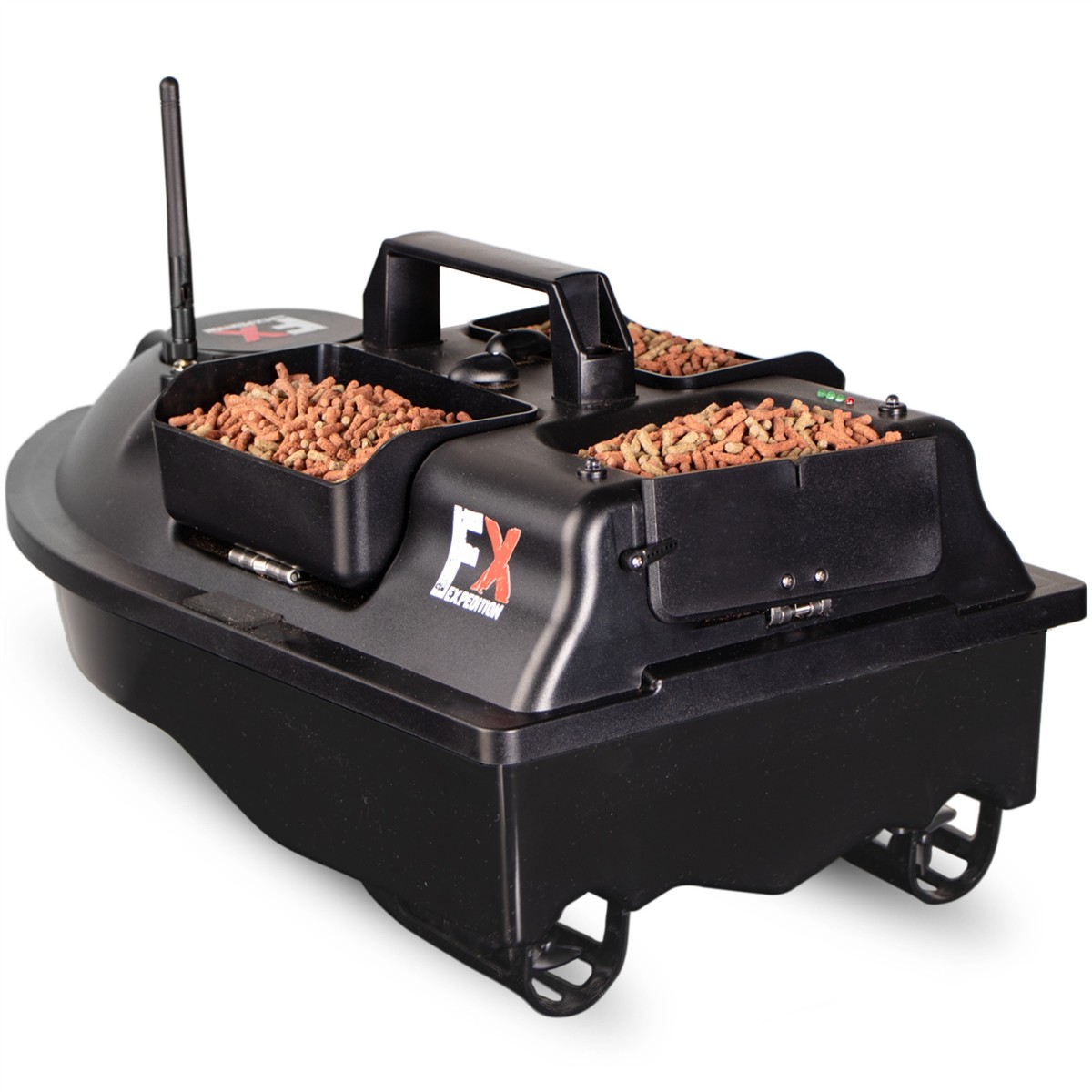 Zdalnie sterowana łódka dla wędkarzy do dokładnego rozmieszczenia zanęty w miejscu połowu. Funkcja GPS pozawala na automatyczne powroty łodzi i zapamiętywanie aż 40 punktów pozycyjnych. Dzięki niej możesz dowieźć przynętę na ryby w miejsca, do których nie sięga nawet najdłuższa wędka.