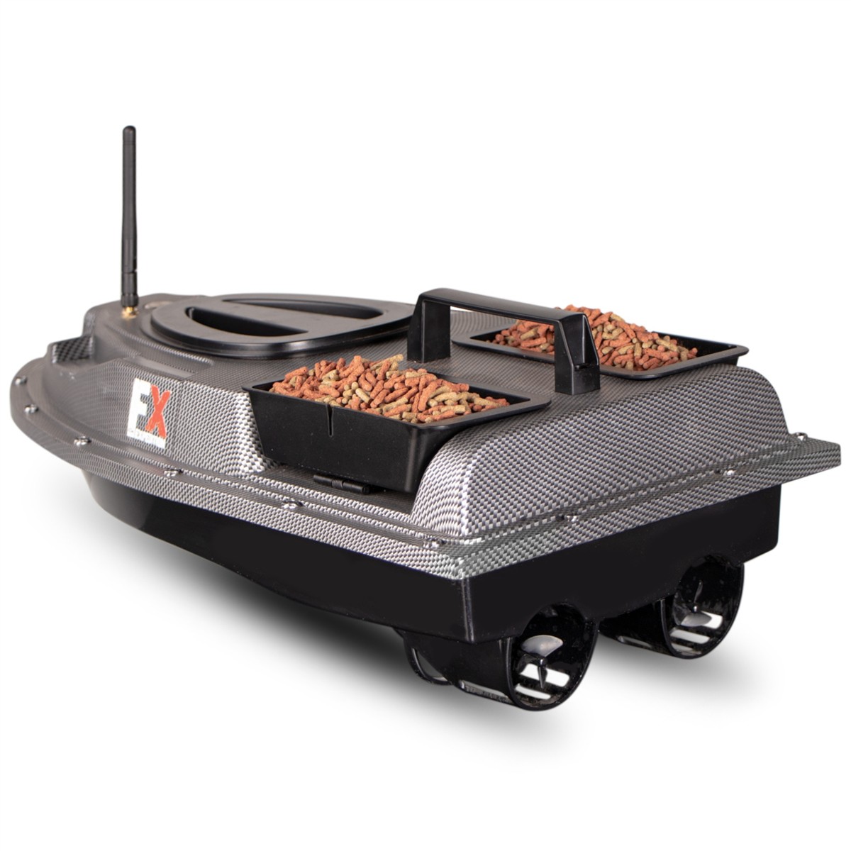 Zdalnie sterowana łódka dla wędkarzy do dokładnego rozmieszczenia zanęty w miejscu połowu. Funkcja GPS pozawala na automatyczne powroty łodzi i zapamiętywanie aż 40 punktów pozycyjnych. Dzięki niej możesz dowieźć przynętę na ryby w miejsca, do których nie sięga nawet najdłuższa wędka.