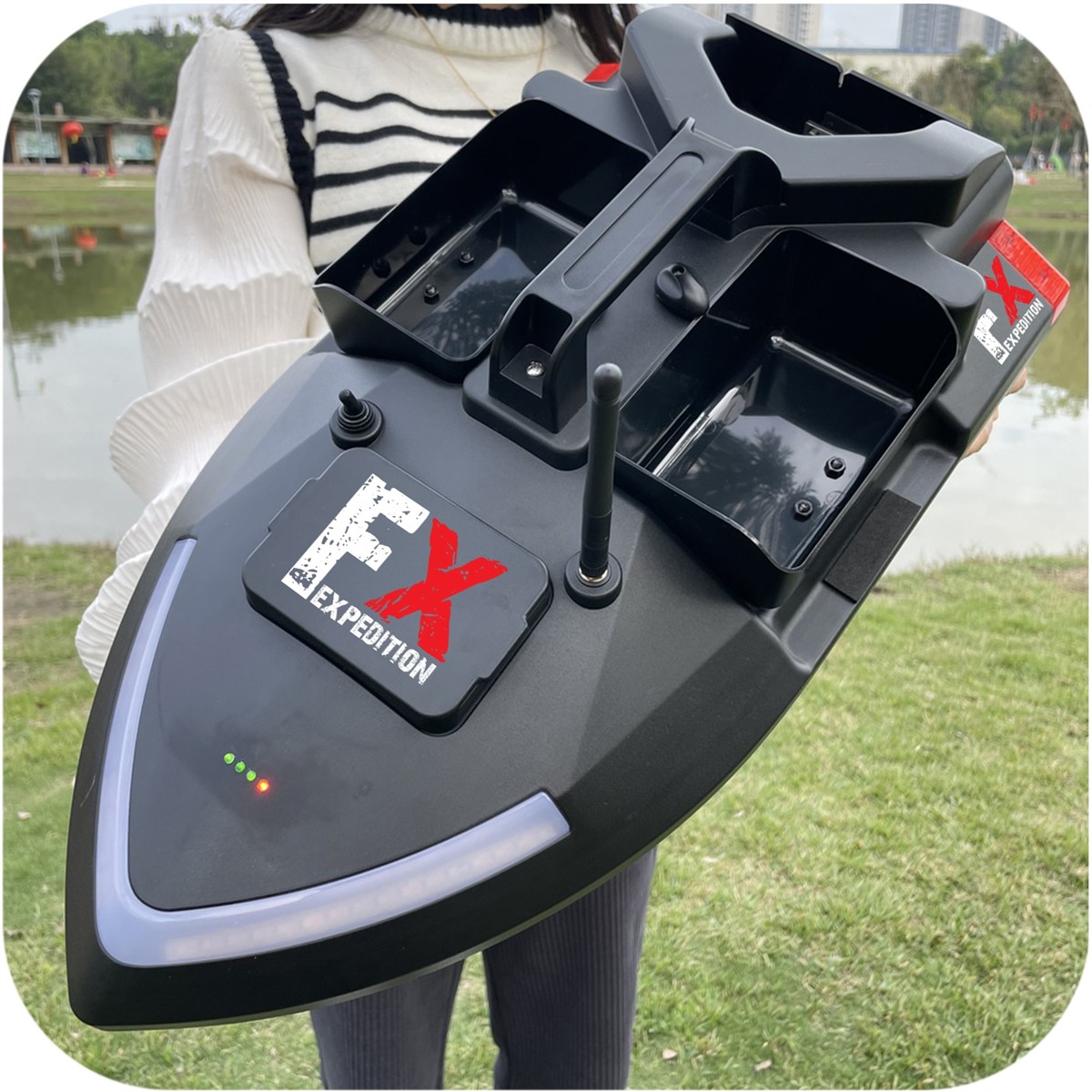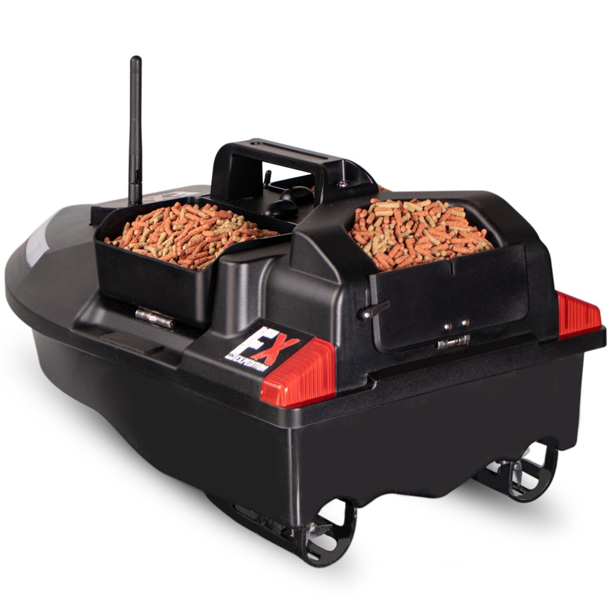 Zdalnie sterowana łódka dla wędkarzy do dokładnego rozmieszczenia zanęty w miejscu połowu. Funkcja GPS pozawala na automatyczne powroty łodzi i zapamiętywanie aż 40 punktów pozycyjnych. Dzięki niej możesz dowieźć przynętę na ryby w miejsca, do których nie sięga nawet najdłuższa wędka.