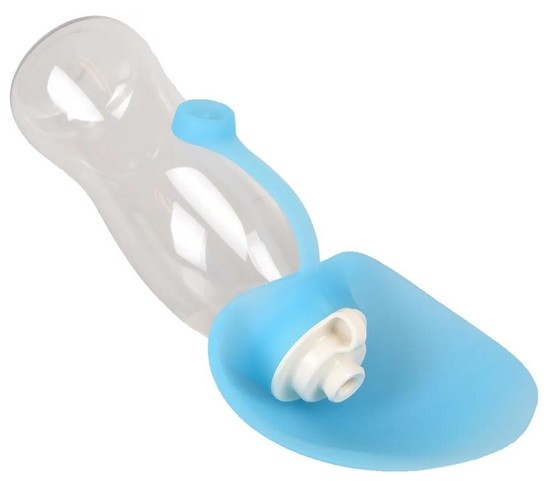 Jeśli zechcemy napoić pupila, wystarczy miskę odwrócić i wtedy układa się pod wylotem butelki.
