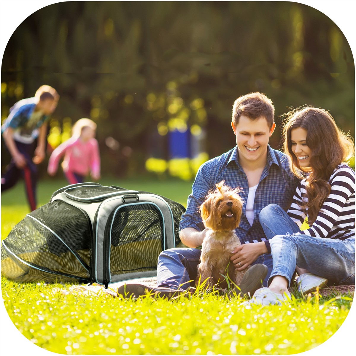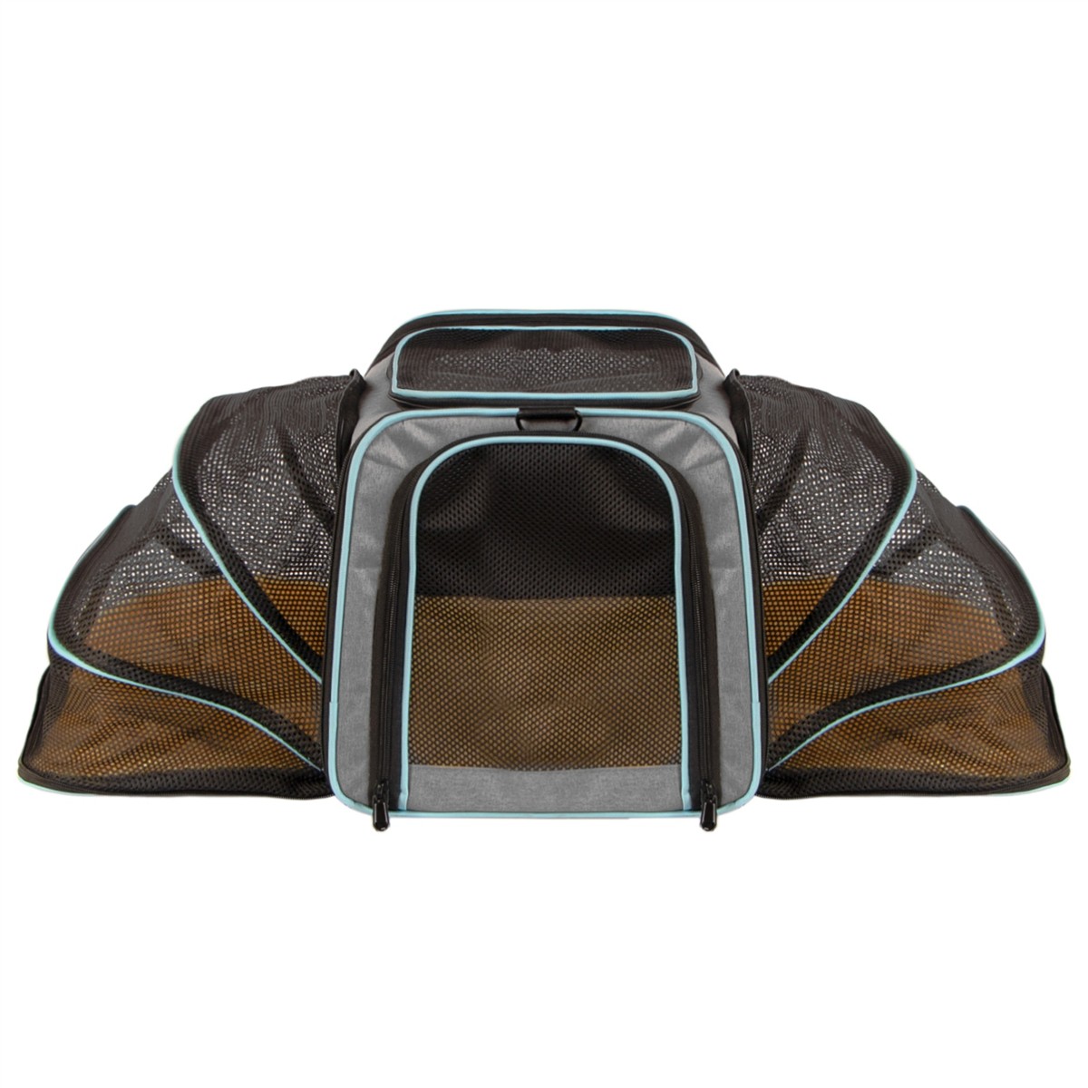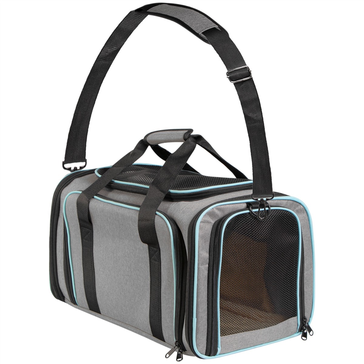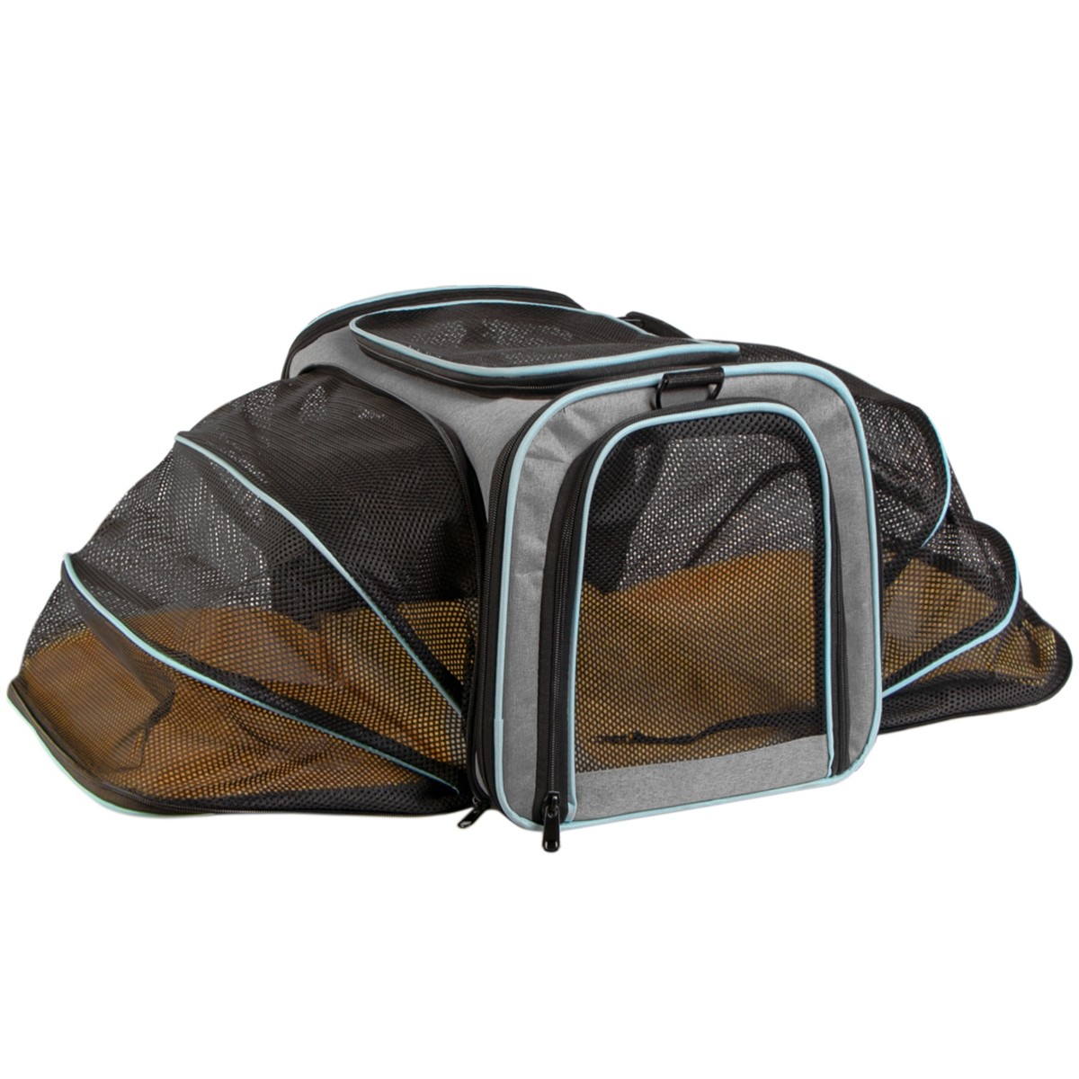 Transporter dla kota lub psa. Idealny do podróży małych i dużych oraz do wizyty u weterynarza. Duża sztywność w połączeniu z bardzo odpornym materiałem i pancernymi zamkami sprawią, że Twój kot czy pies nie będzie w stanie zniszczyć tego transportera i będzie mógł się cieszyć podróżami bez końca. Otwierana w całości przednia i tylna klapa, rozkładane "namioty" po obu stronach torby czy mała smycz wewnątrz to tylko niektóre udogodnienia.