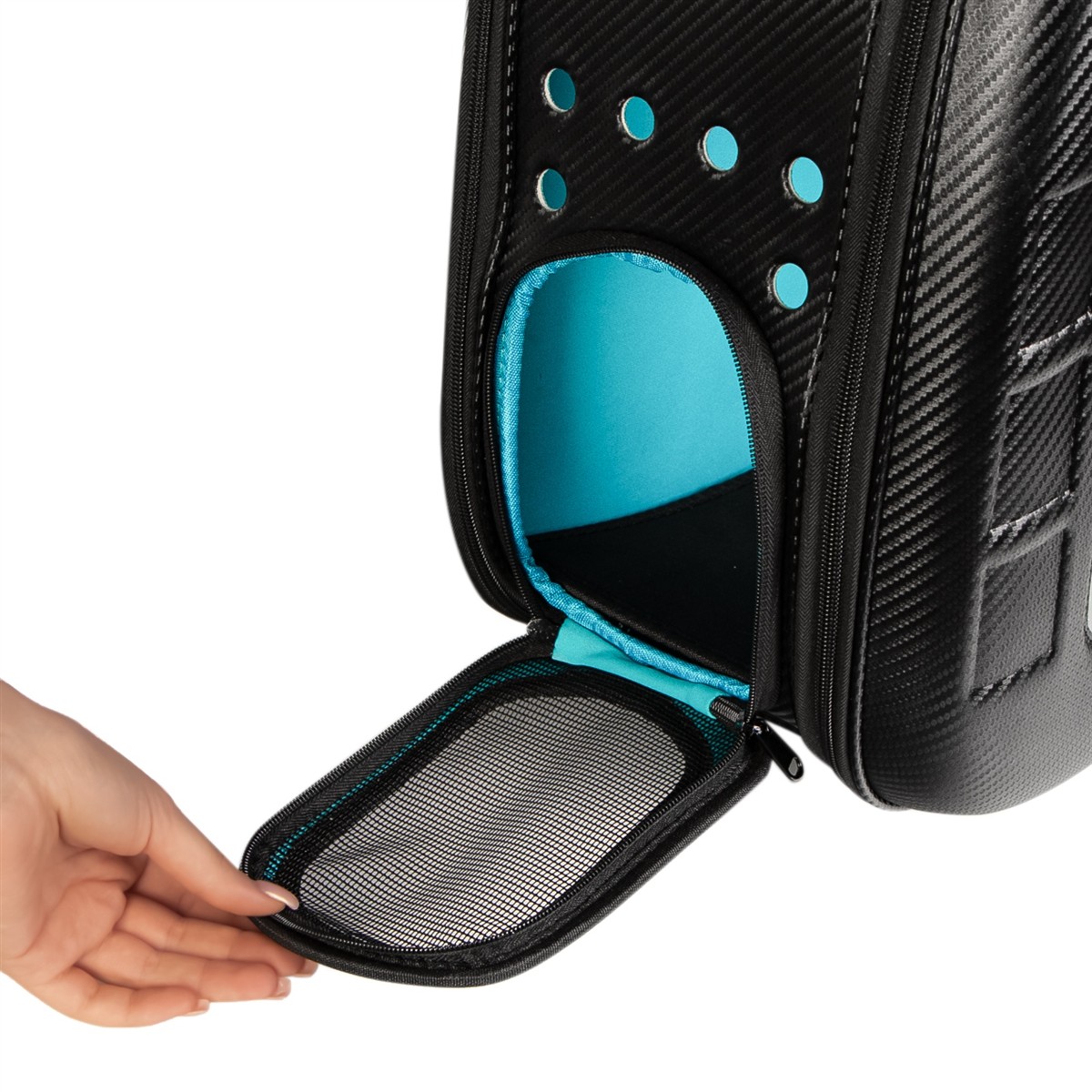 - Przednia mała klapa jest całkowicie przezroczysta: A ty w około będziesz słyszeć: "oooo jaki słodziak". Ale oprócz tego, że wszyscy będą mogli podziwiać Twojego futrzastego modela, patent taki pozwala na wnikliwą obserwację otoczenia przez Twojego ciekawskiego czworonoga.
