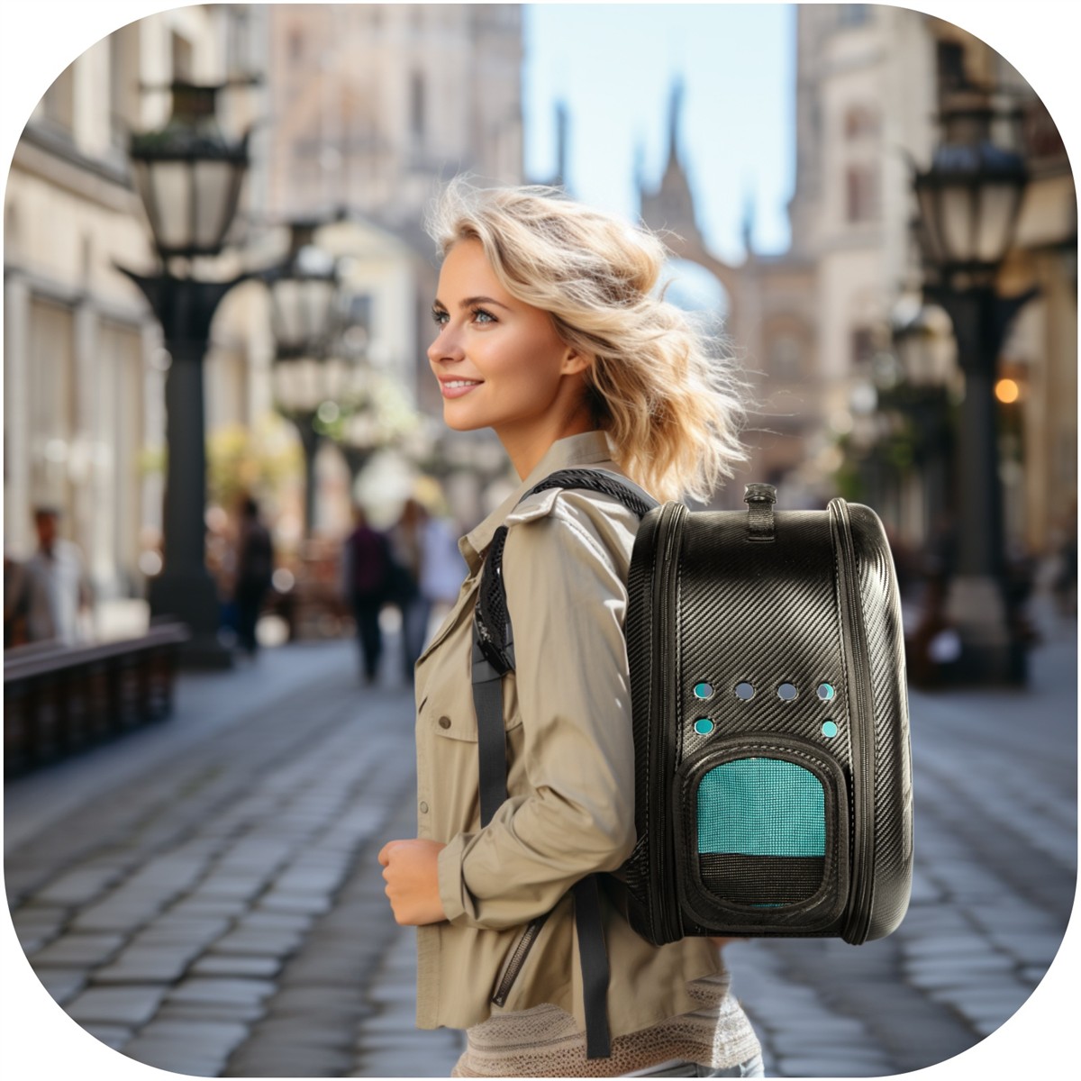 Transporter - plecak dla kota lub psa. Idealny do podróży małych i dużych oraz do wizyty u weterynarza. Duża sztywność w połączeniu z bardzo odpornym materiałem i pancernymi zamkami sprawią, że Twój kot czy pies nie będzie w stanie zniszczyć tego transportera i będzie mógł się cieszyć podróżami bez końca. Otwierana przednia klapka "okienko", otwierana klapka z boku, dodatkowe wentylacje to tylko niektóre udogodnienia.