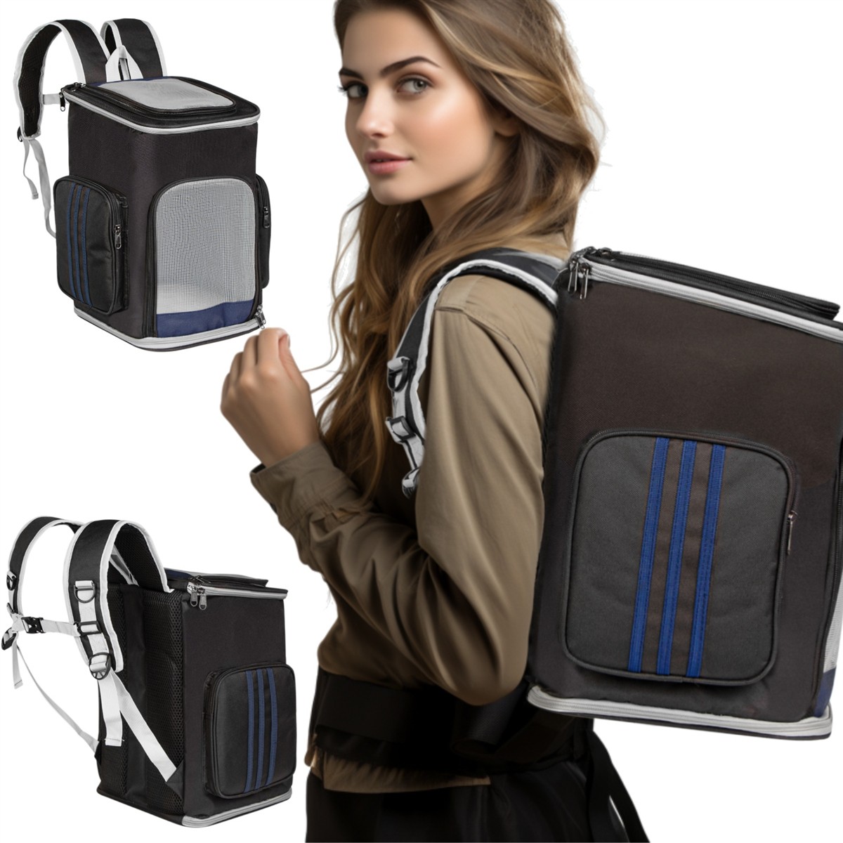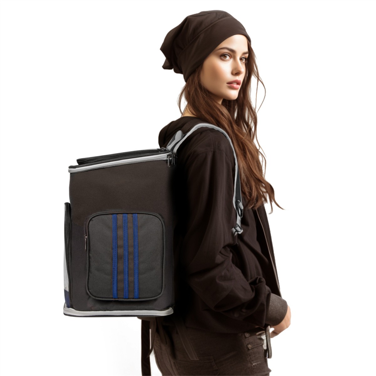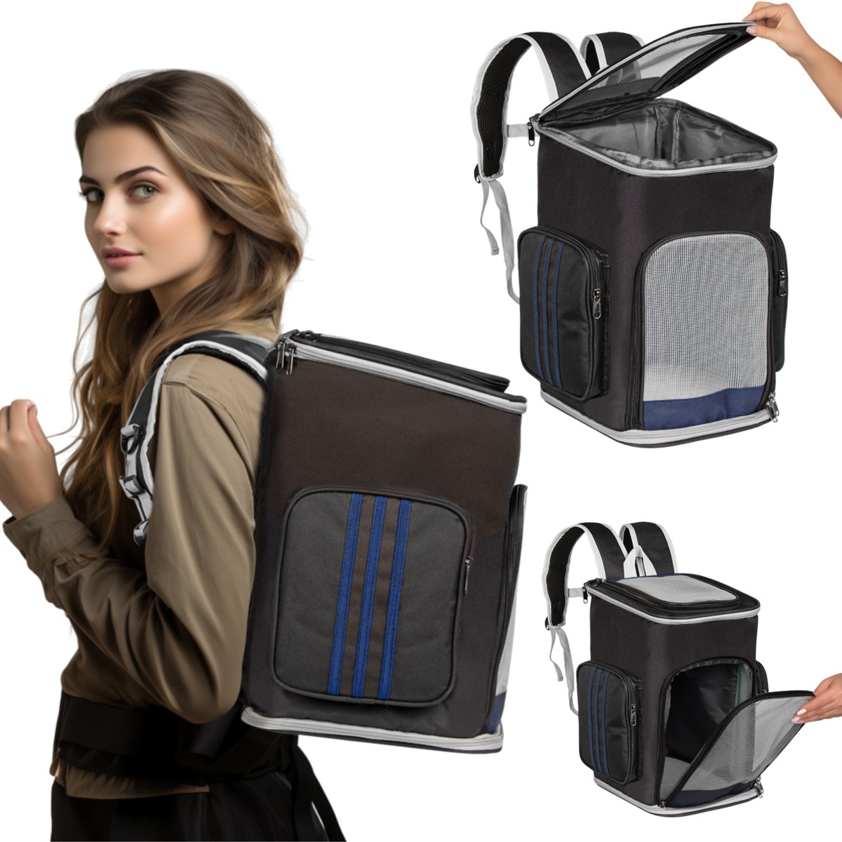 Transporter - plecak dla kota lub psa. Idealny do podróży małych i dużych oraz do wizyty u weterynarza. Duża sztywność w połączeniu z bardzo odpornym materiałem i pancernymi zamkami sprawią, że Twój kot czy pies nie będzie w stanie zniszczyć tego transportera i będzie mógł się cieszyć podróżami bez końca. Otwierana przednia klapa, kieszonki, podwójnie otwierane wieczko górne, dodatkowe wentylacje to tylko niektóre udogodnienia.