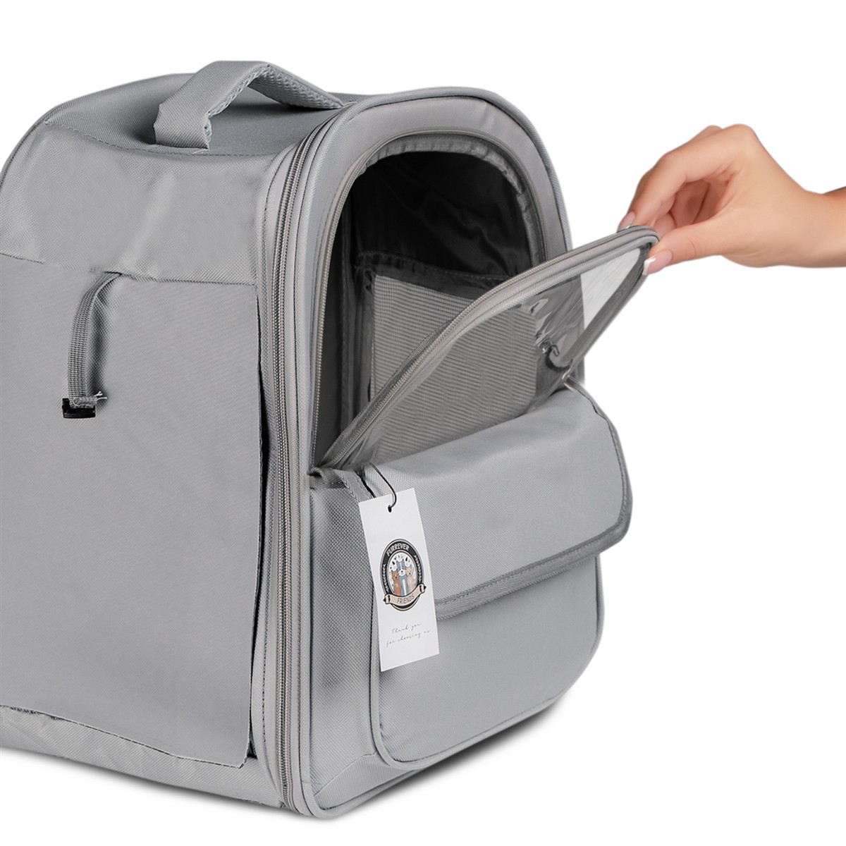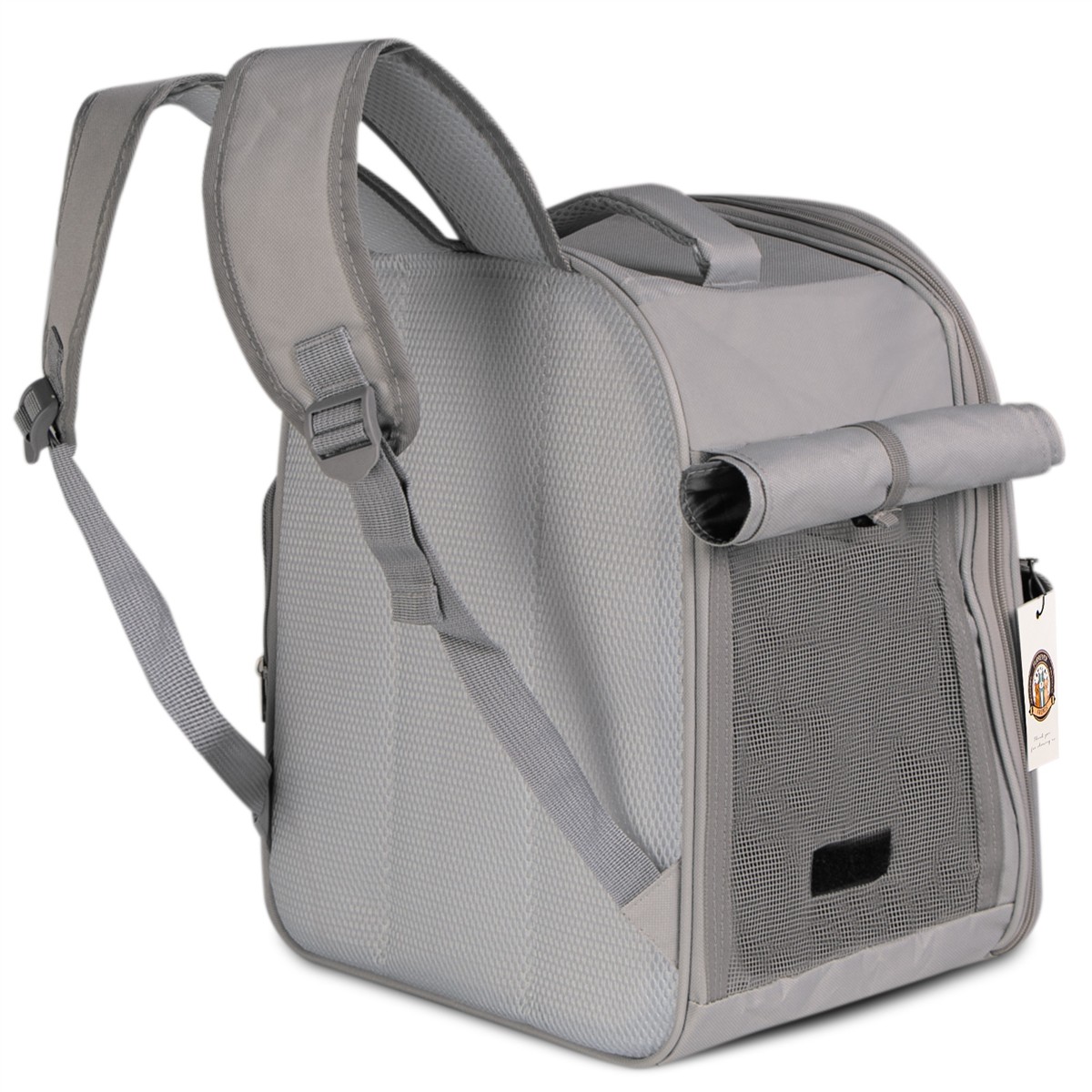 Transporter - plecak dla kota lub psa. Idealny do podróży małych i dużych oraz do wizyty u weterynarza. Duża sztywność w połączeniu z bardzo odpornym materiałem i pancernymi zamkami sprawią, że Twój kot czy pies nie będzie w stanie zniszczyć tego transportera i będzie mógł się cieszyć podróżami bez końca. Otwierana przednia klapa, otwierane okienko przednie, kieszonka, dodatkowe wentylacje to tylko niektóre udogodnienia.