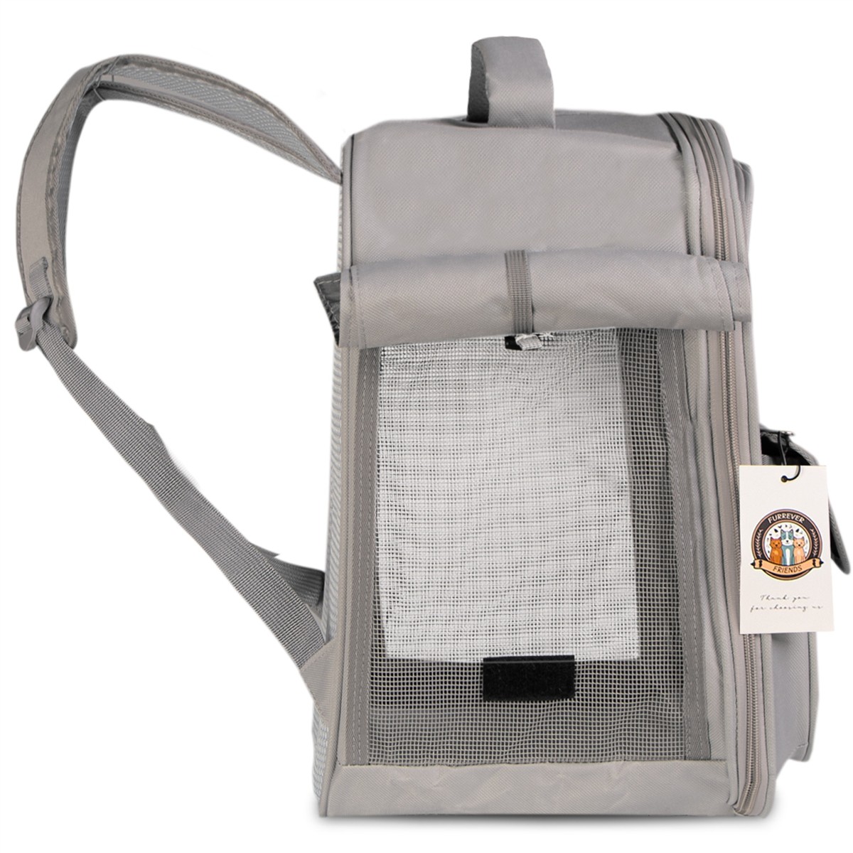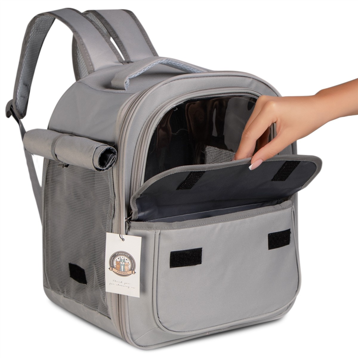 - Otwierana przednia klapa w całości: Bez problemu wyjmiesz zwierzaczka z plecaczka, nawet jeśli ten postanowił uciąć sobie drzemkę.