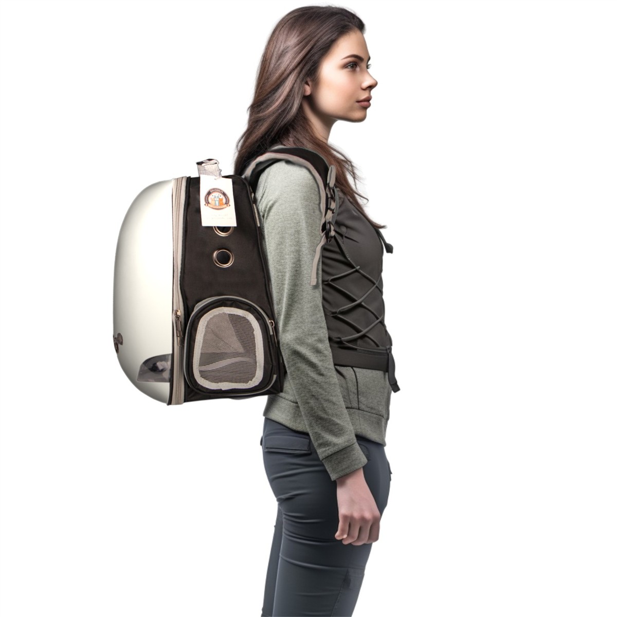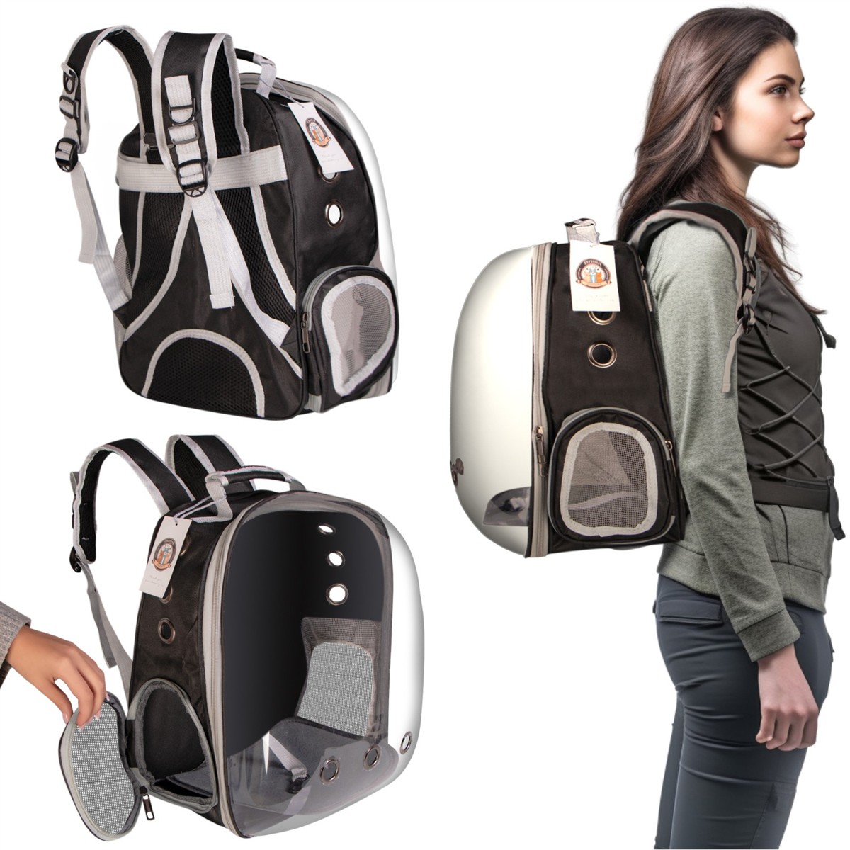 Transporter - plecak dla kota lub psa. Idealny do podróży małych i dużych oraz do wizyty u weterynarza. Duża sztywność w połączeniu z bardzo odpornym materiałem i pancernymi zamkami sprawią, że Twój kot czy pies nie będzie w stanie zniszczyć tego transportera i będzie mógł się cieszyć podróżami bez końca. Otwierana w całości przednia przeźroczysta klapa, kieszonki dodatkowe wentylacje czy mała smycz wewnątrz to tylko niektóre udogodnienia.