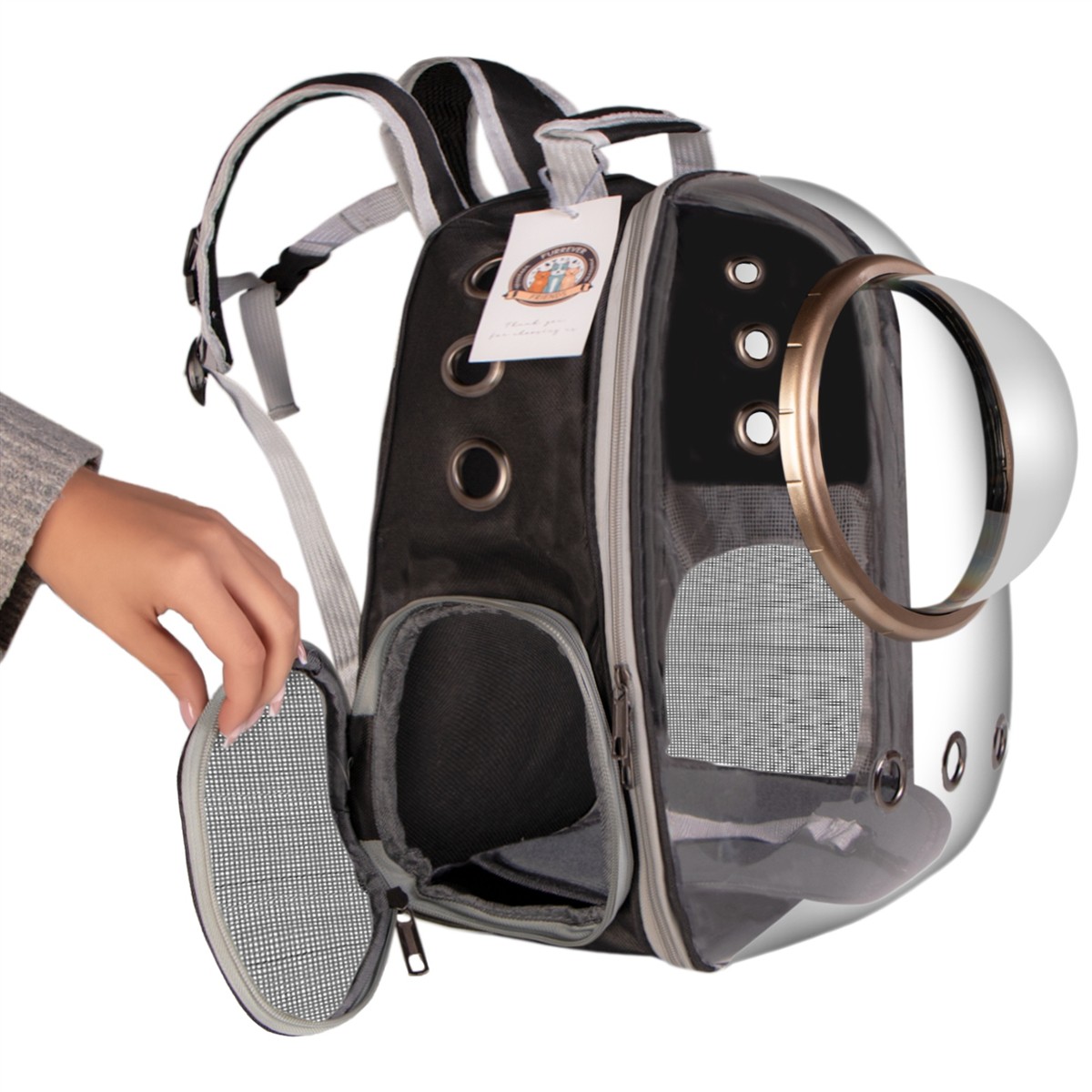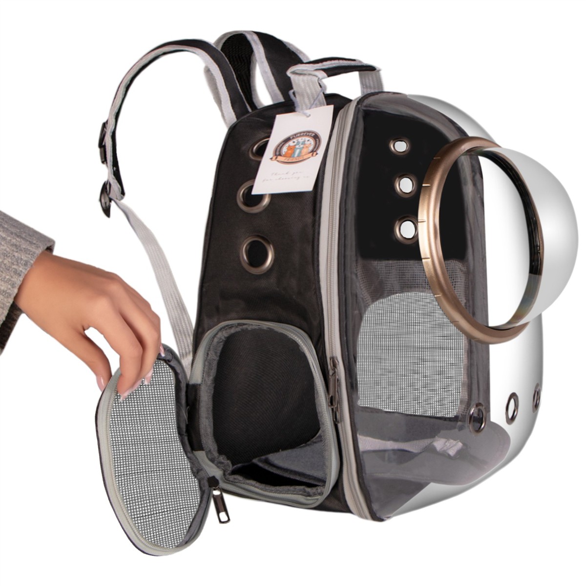 - Otwierana klapa w całości: Bez problemu wyjmiesz zwierzaczka z plecaczka, nawet jeśli ten postanowił uciąć sobie drzemkę.