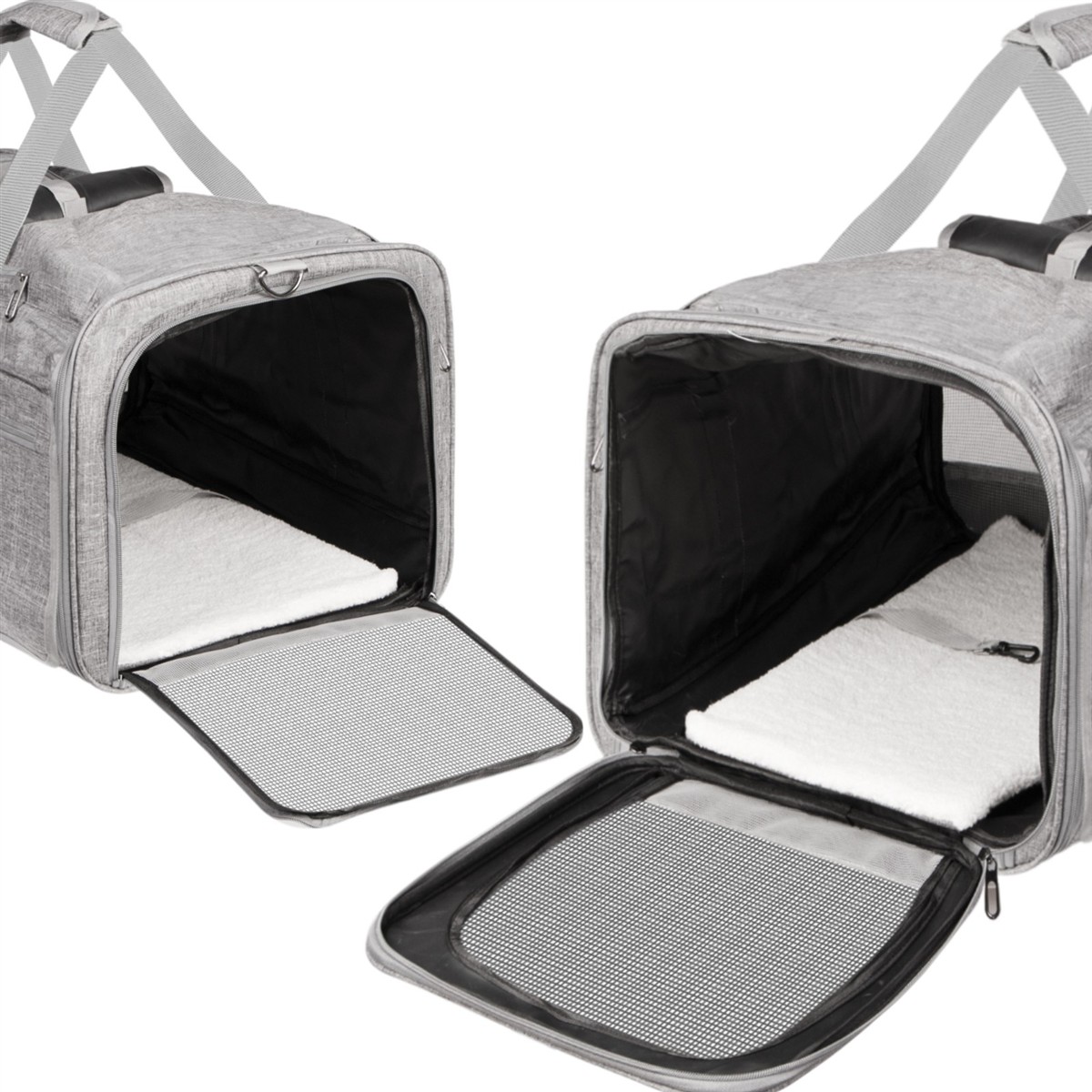 - 2 X Otwierana klapa w całości: Bez problemu wyjmiesz zwierzaczka z plecaczka, nawet jeśli ten postanowił uciąć sobie drzemkę.