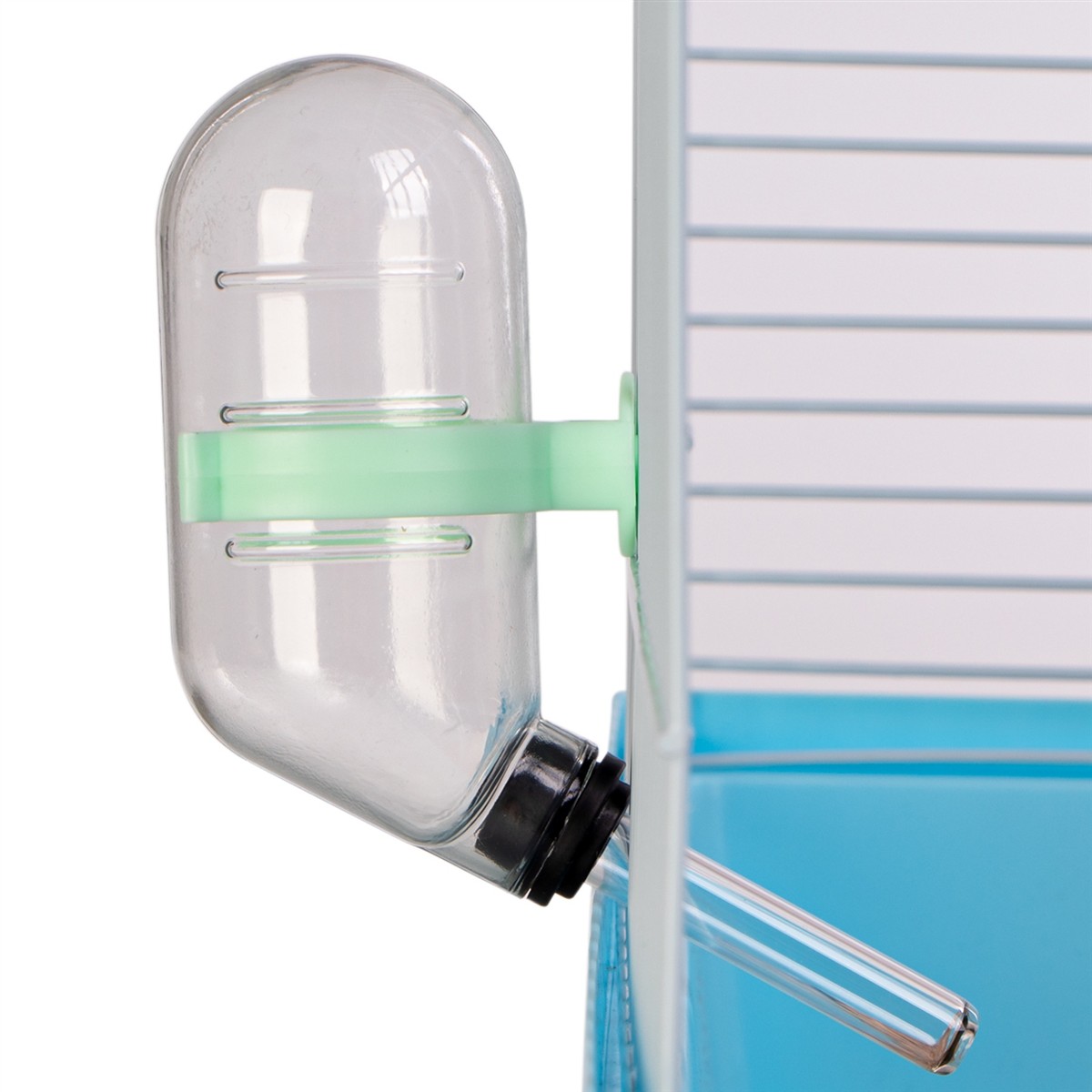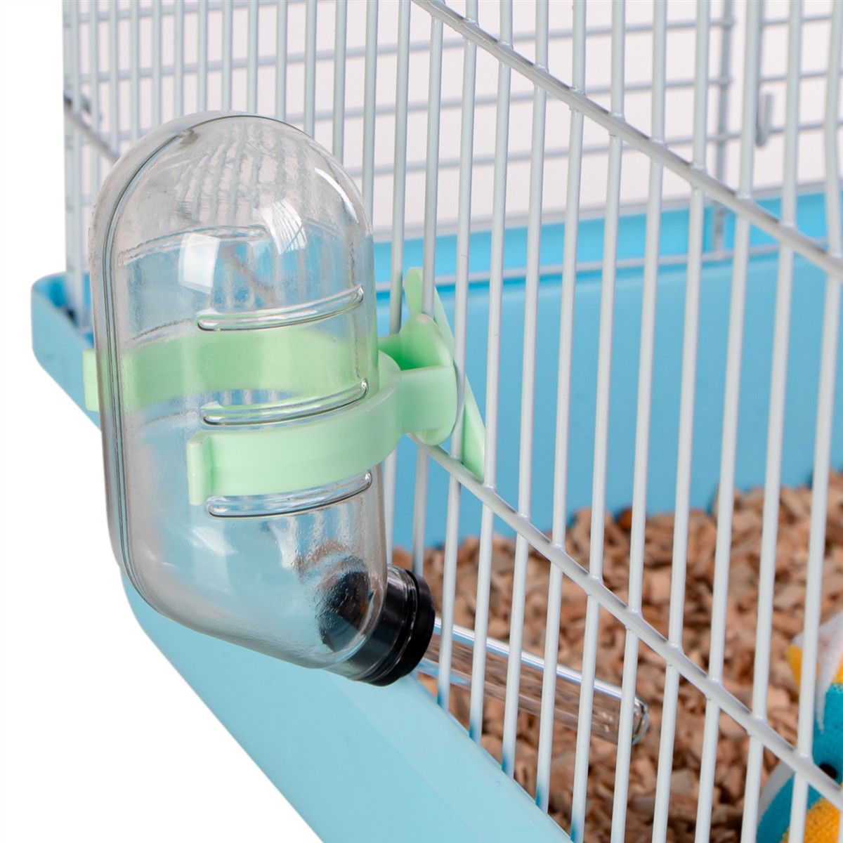 - Uchwyt na klatkę: Specjalny uchwyt umożliwia łatwe i stabilne przymocowanie poidełka do żeber klatki, zapewniając wygodny dostęp do wody.