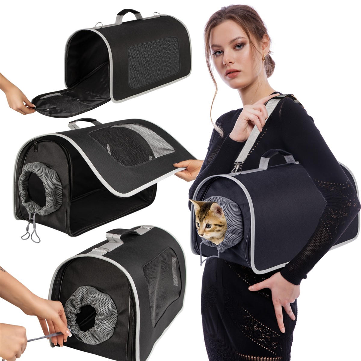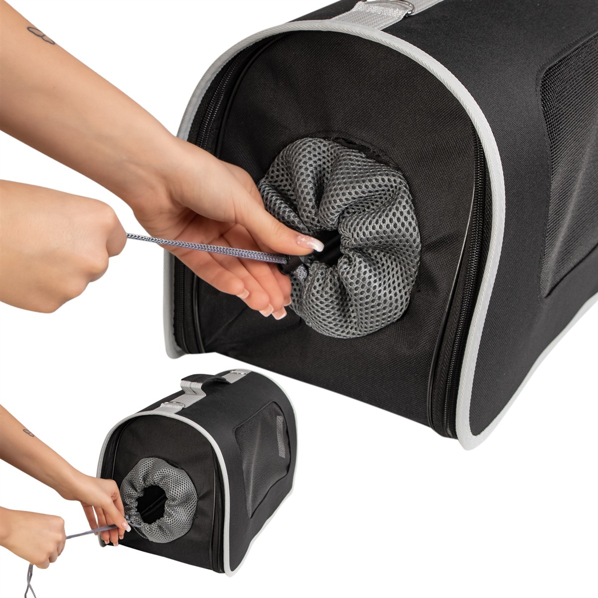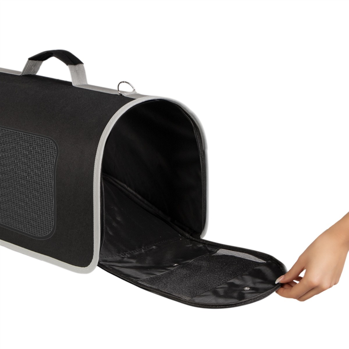 - Otwierany cały transporter: Zamek biegnie dookoła transportera, dlatego możesz otworzyć torbę w całości, aby wyjąć zwierzaka który bardzo nie chce wyjść.