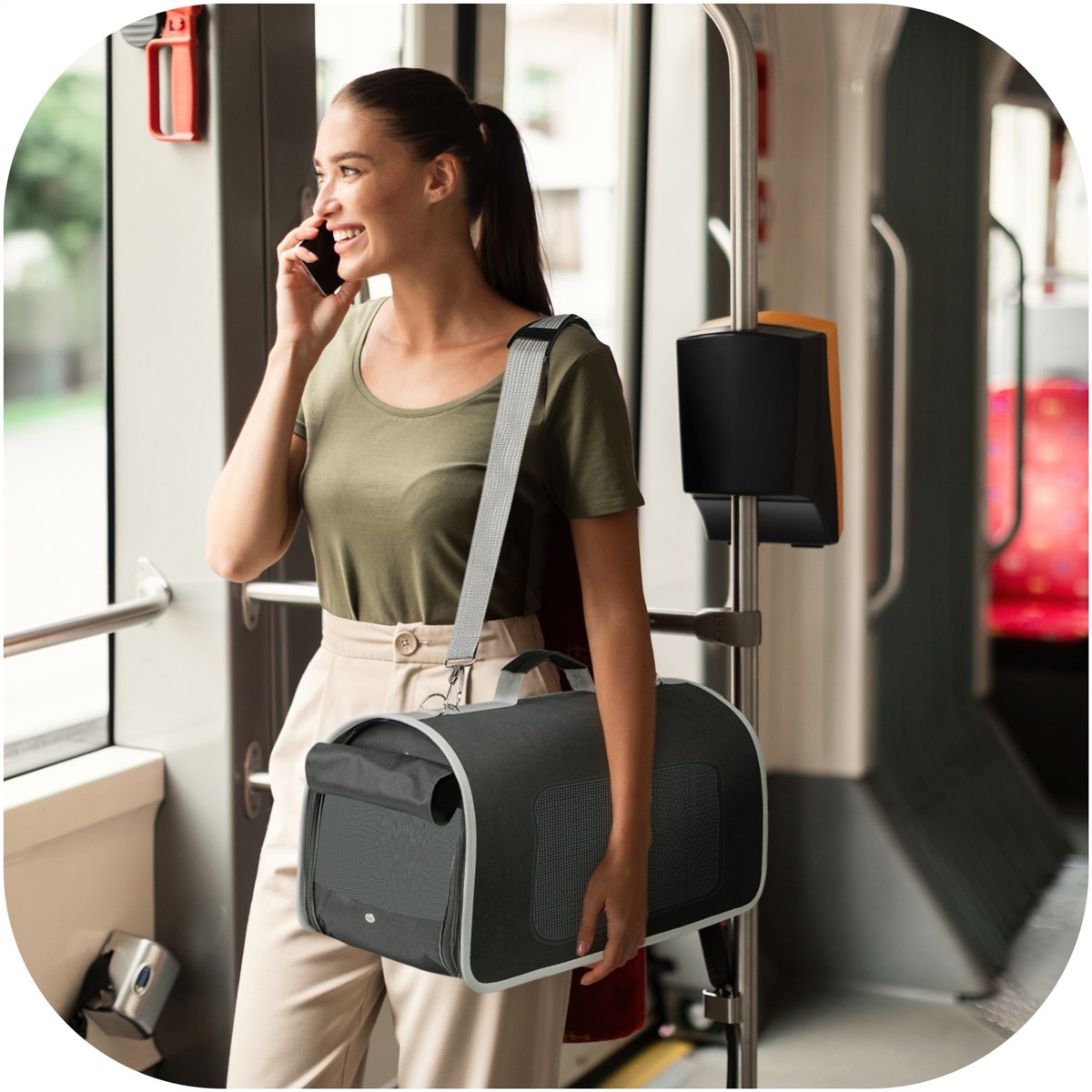 - Uchwyt "ręczny" i na ramię: Noś transporter na ramieniu lub w dłoni - jak Ci wygodnie.