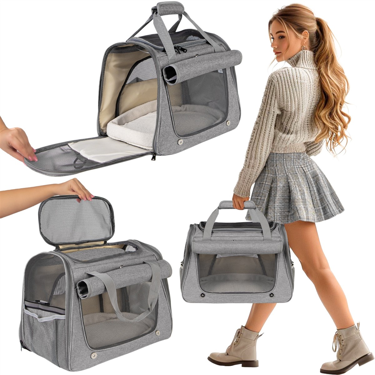 Transporter dla kota lub psa. Idealny do podróży małych i dużych oraz do wizyty u weterynarza. Duża sztywność w połączeniu z bardzo odpornym materiałem i pancernymi zamkami sprawią, że Twój kot czy pies nie będzie w stanie zniszczyć tego transportera i będzie mógł się cieszyć podróżami bez końca. Otwierana w całości przednia i tylna klapa, otwierana dodatkowa klapa na górze, kieszonki czy żaluzja boczna to tylko niektóre udogodnienia.