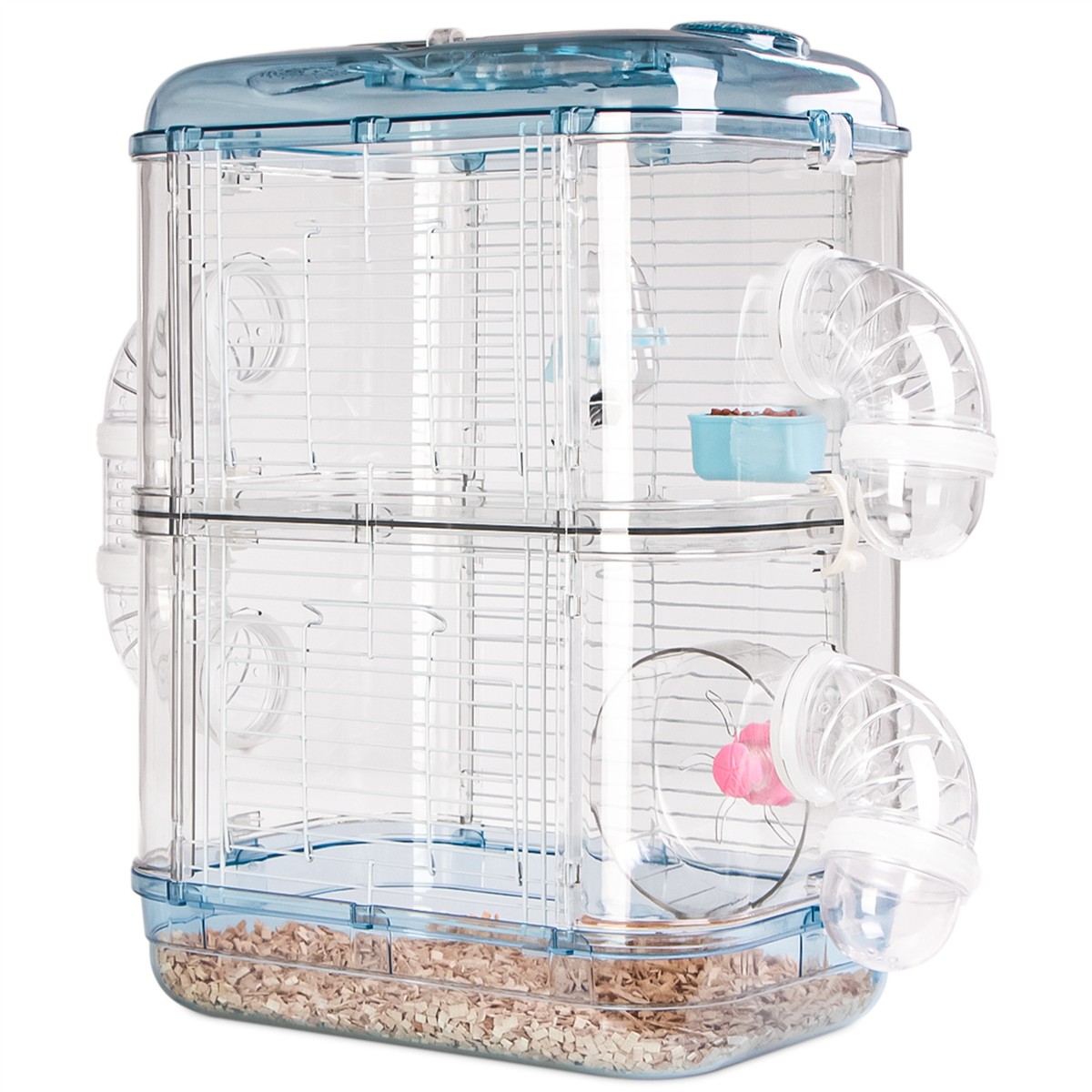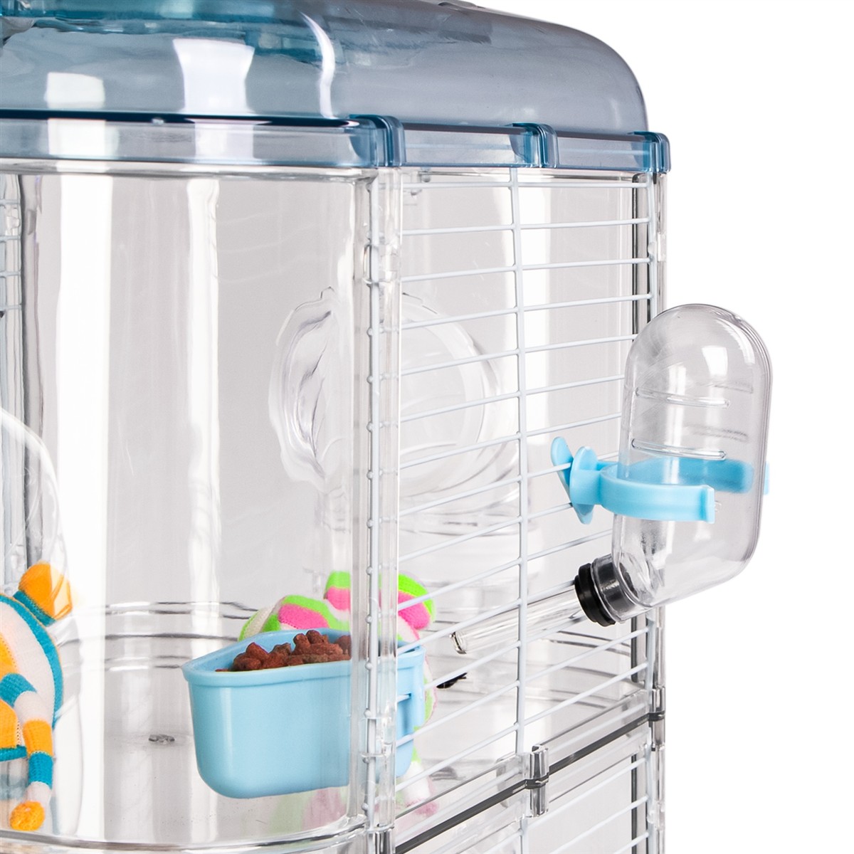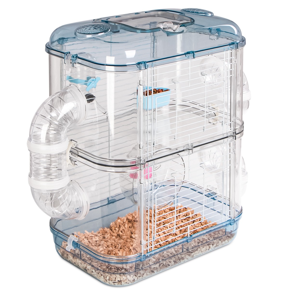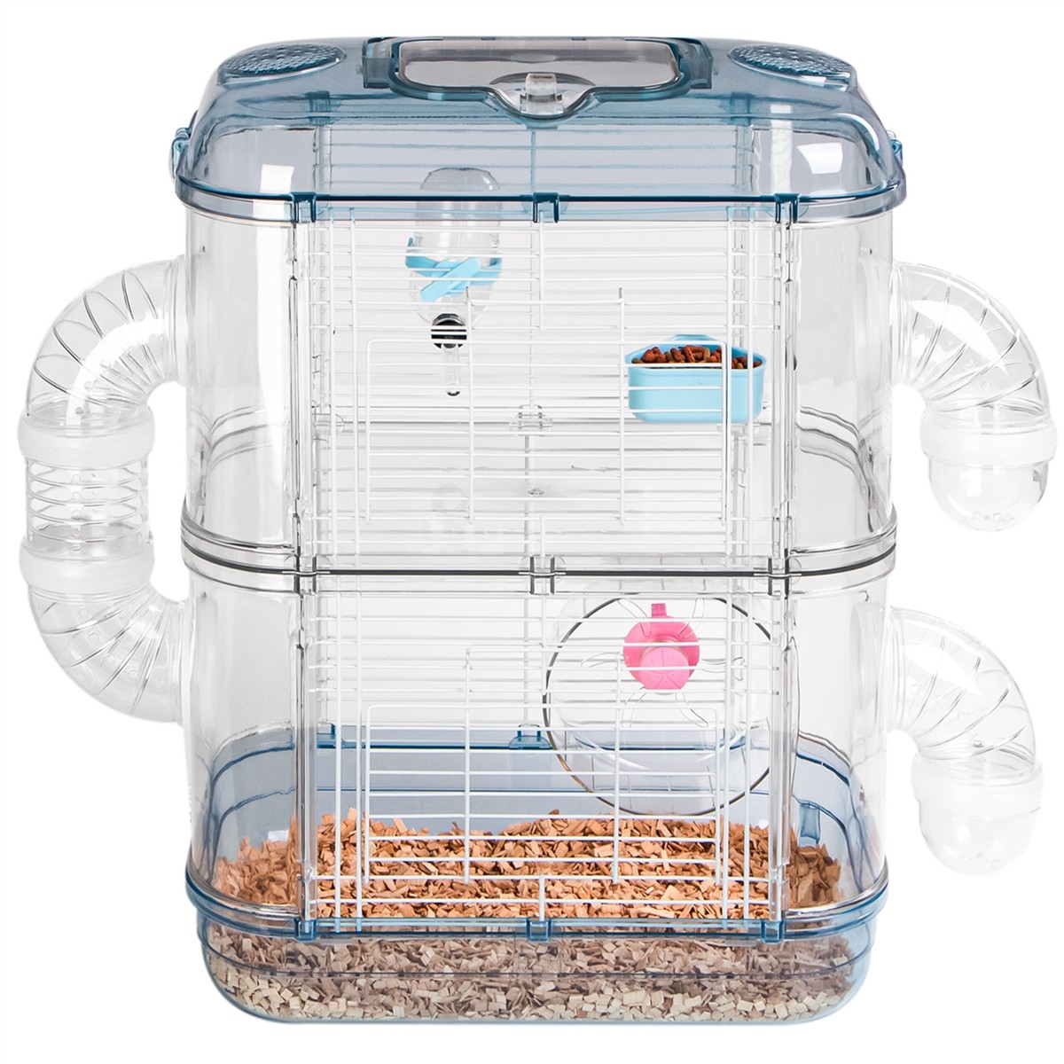Poznaj naszą wyjątkową klatkę dla chomika lub myszy, która łączy funkcjonalność z nowoczesnym designem. Klatka ta wyróżnia się przezroczystym plastikowym korpusem, który umożliwia łatwe obserwowanie Twojego pupila.