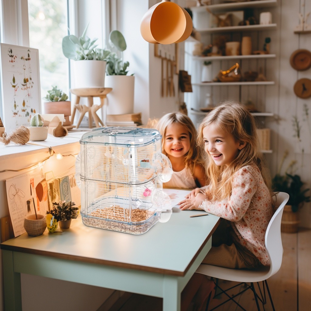 - Akcesoria w zestawie: W zestawie znajdziesz miskę na jedzenie, kołowrotek do biegania oraz poidełko, zapewniając wszystko, czego potrzebuje Twój mały przyjaciel.