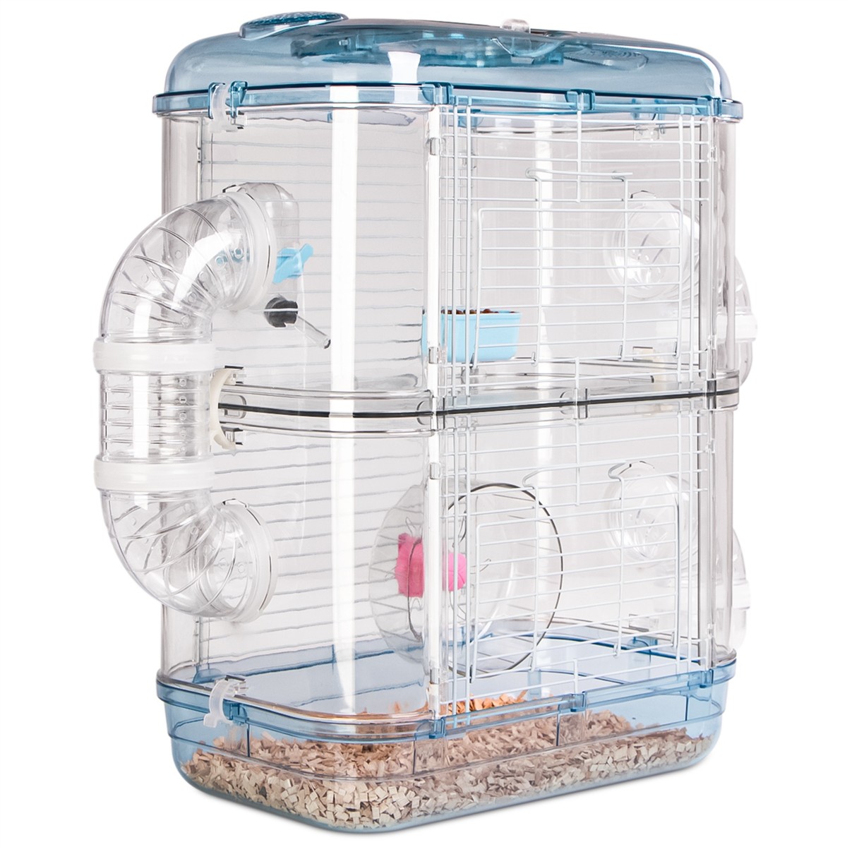 Dwupoziomowa klatka dla chomika lub myszy. To nie tylko pełen zestaw różnych niezbędnych elementów dla małych gryzoni, ale przemyślana konstrukcja dająca wiele frajdy, zarówno dla małych opiekunów futrzastego przyjaciela, jak i dla samego mieszkańca ów klatki. Klatka łączy w sobie plastikowy, przeźroczysty korpus z tradycyjną klatką żebrową.