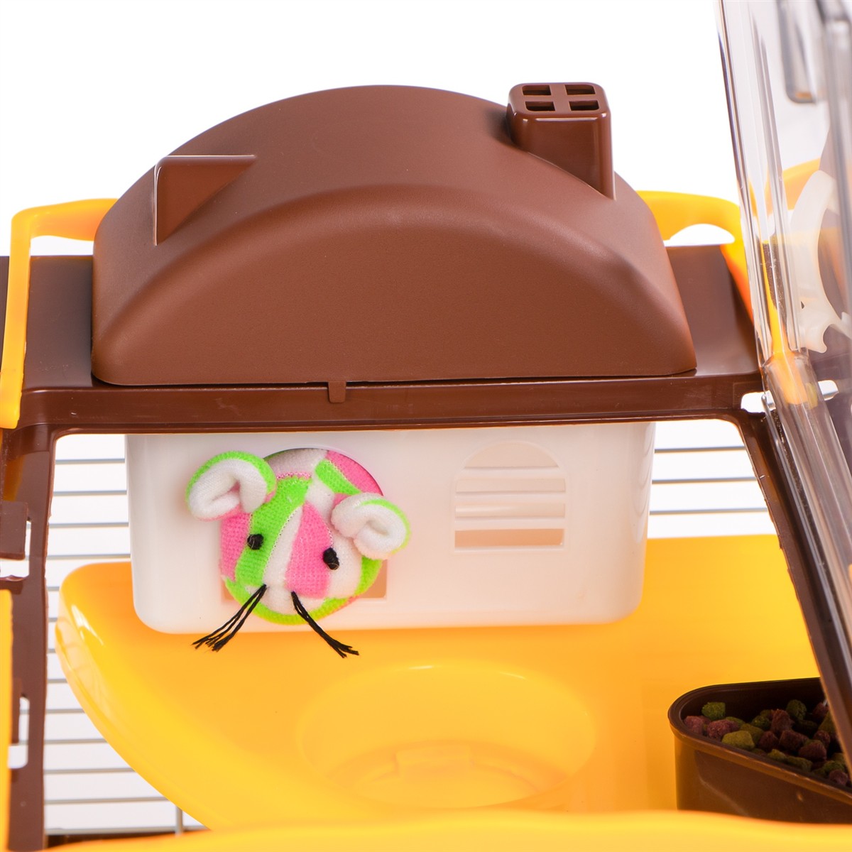 - Wyjmowany domek w całości: Bez konieczności otwierania klatki. Czyli szybki sposób na sprzątanie.