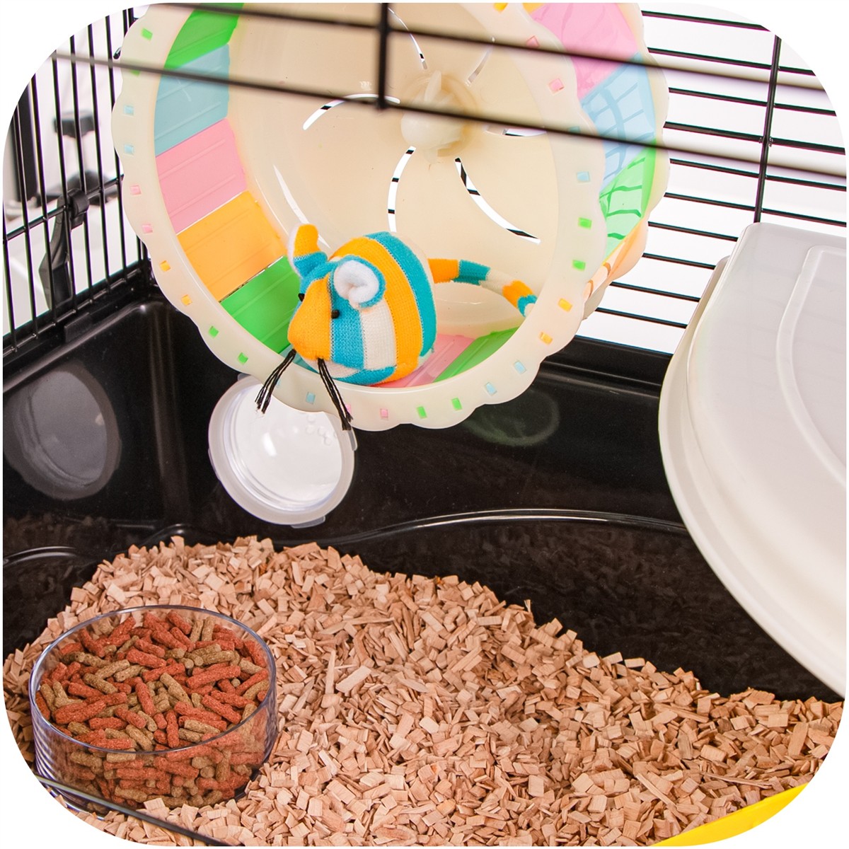 Kołowrotek Sportowy: W naszej klatce znajdziesz kołowrotek, który nie tylko zapewni rozrywkę Twojemu gryzoniowi, ale także pozwoli mu utrzymać formę. Przygotuj się na nieskończone maratony w miejscu!