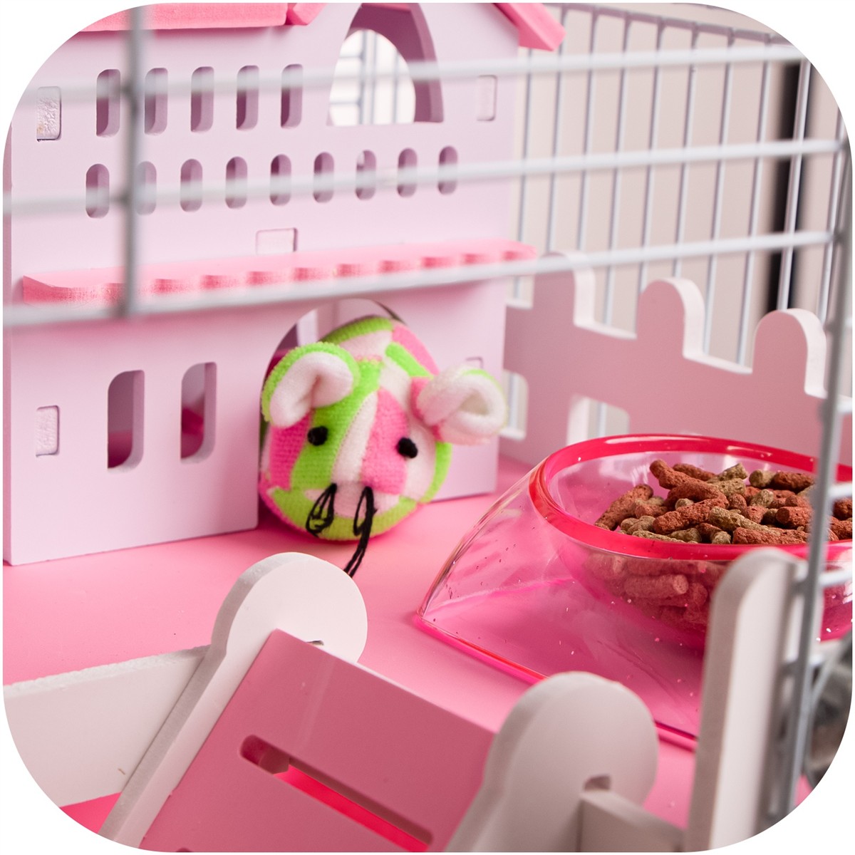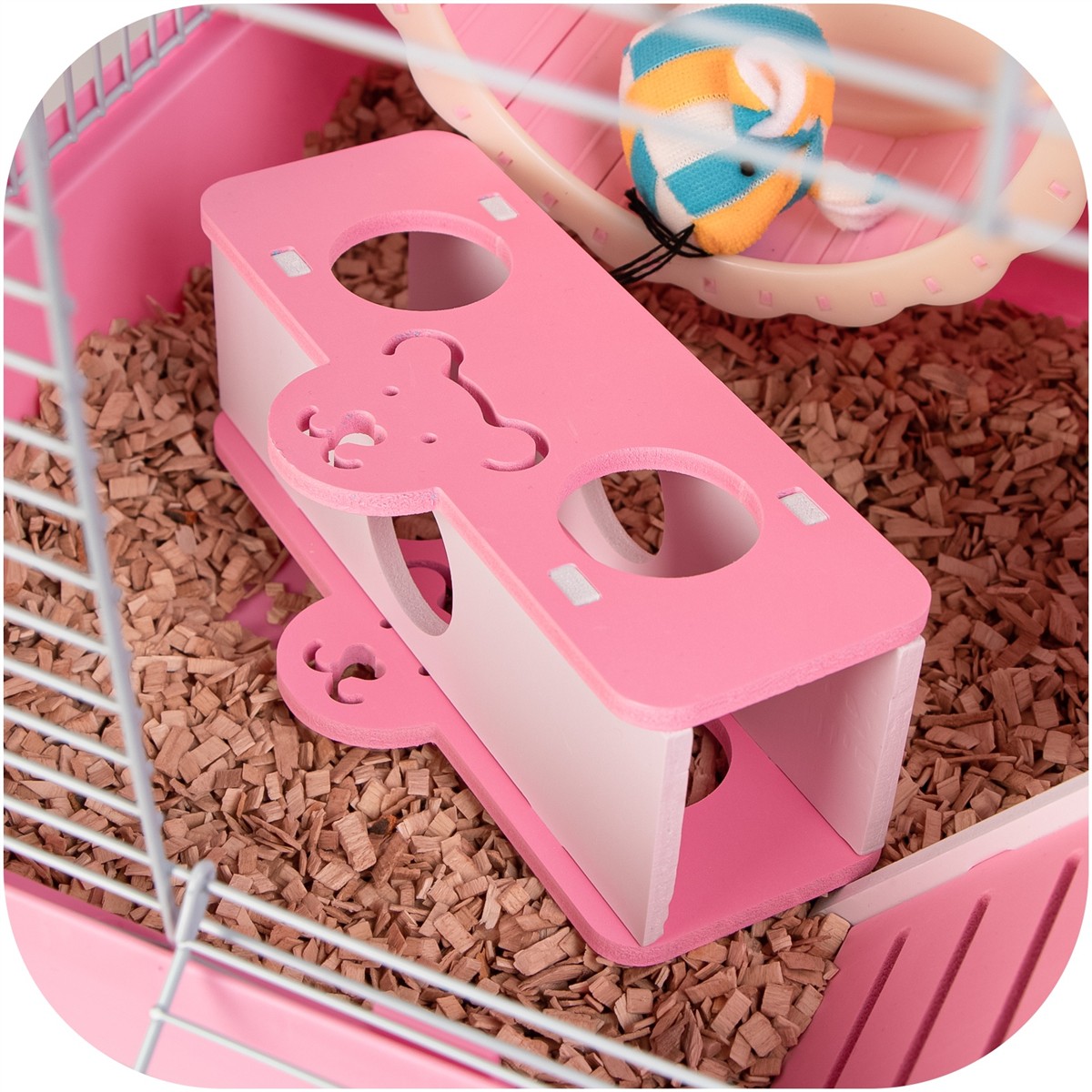 Królewski Domeczek: Ten miniaturowy pałac jest idealnym azylem dla Twojego małego przyjaciela. Może się w nim schować, odpocząć po całym dniu biegania w kołowrotku lub po prostu zaszyć się z zapasem przysmaków.