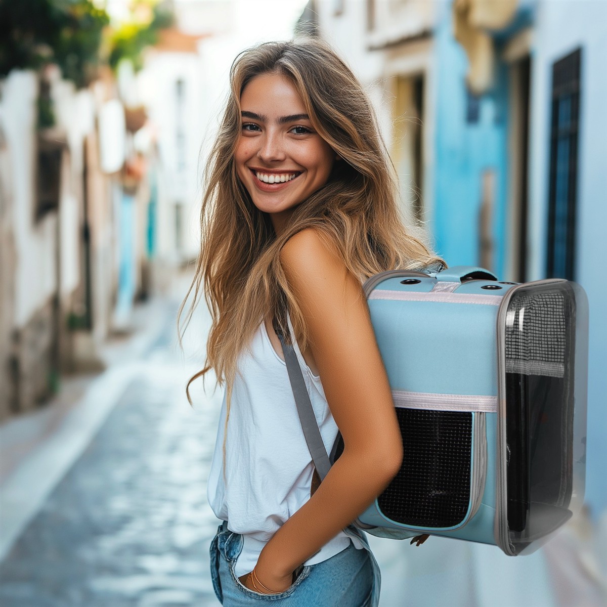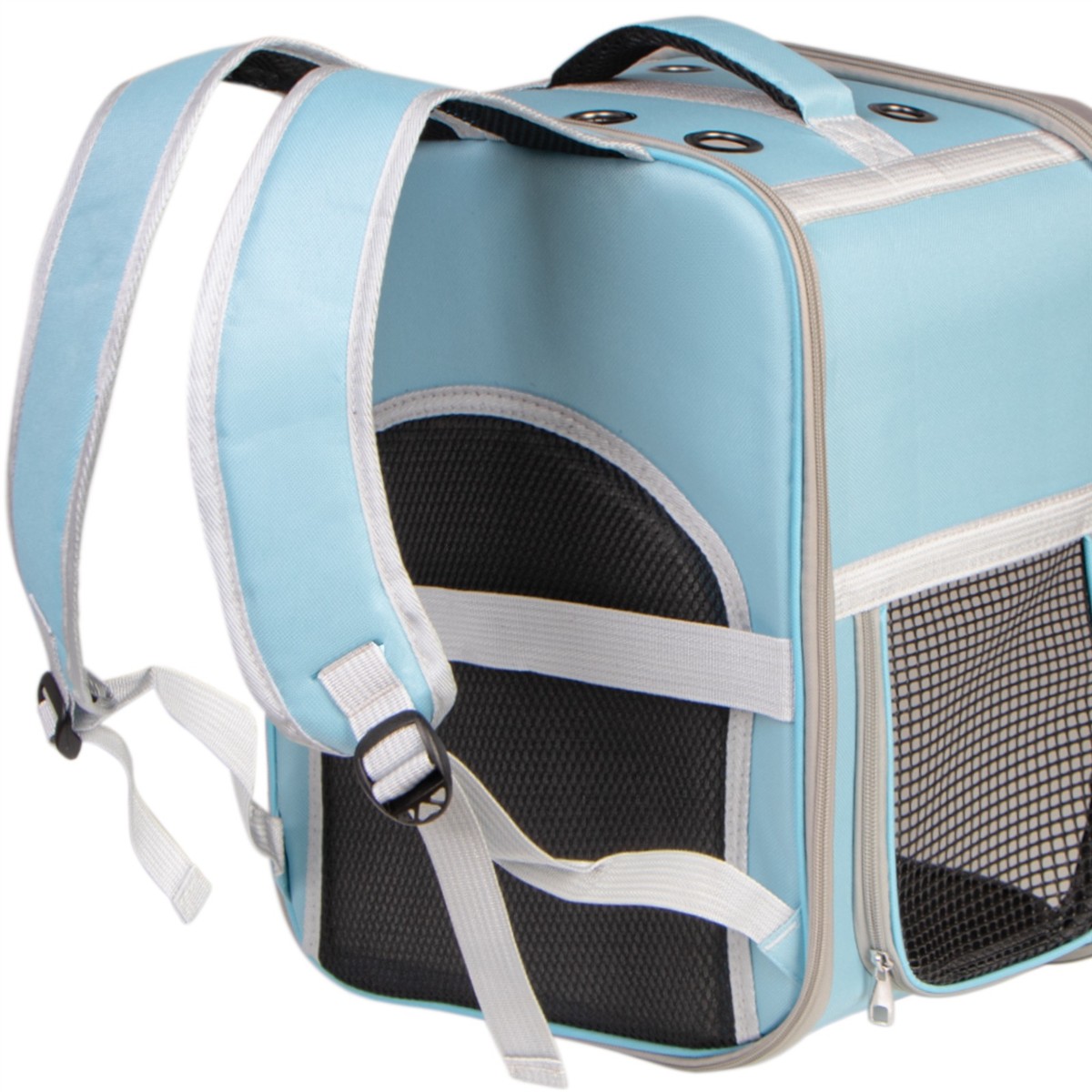 Transporter - plecak dla kota lub psa. Idealny do podróży małych i dużych oraz do wizyty u weterynarza. Duża sztywność w połączeniu z bardzo odpornym materiałem i pancernymi zamkami sprawią, że Twój kot czy pies nie będzie w stanie zniszczyć tego transportera i będzie mógł się cieszyć podróżami bez końca. Otwierana w całości przednia przeźroczysta klapa, wentylacje czy mała smycz wewnątrz to tylko niektóre udogodnienia.