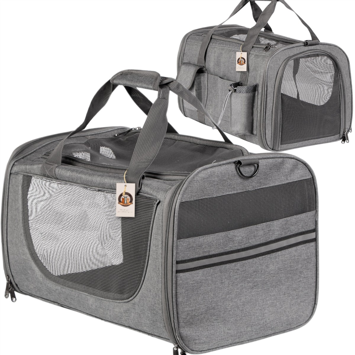 Transporter na kółkach dla kota lub psa. Idealny do podróży małych i dużych oraz do wizyty u weterynarza. Duża sztywność w połączeniu z bardzo odpornym materiałem i pancernymi zamkami sprawią, że Twój kot czy pies nie będzie w stanie zniszczyć tego transportera i będzie mógł się cieszyć podróżami bez końca. Otwierana w całości przednia i tylna klapa, otwierana dodatkowa klapa na górze i z przodu, smycz wewnątrz torby to tylko niektóre udogodnienia.