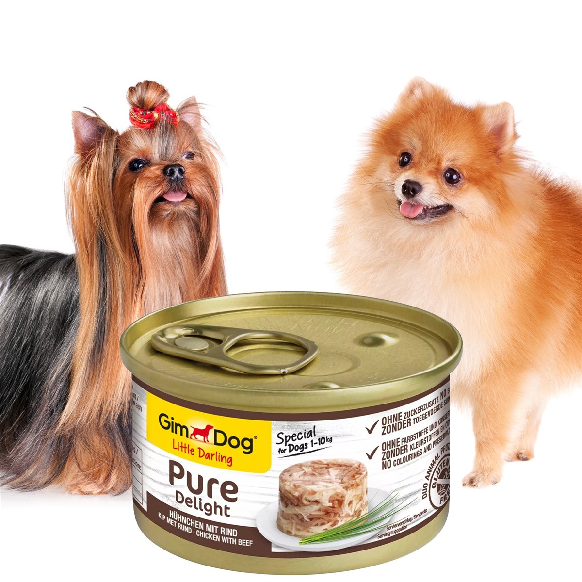 Wyjątkowa karma dla małych psów (1 do 10kg). Specjalna mieszanka filecików kurczaka, wołowiny i soczystej galaretki. Wszystkie pieski szaleją z radości na dźwięk otwierającej się karmy Gimdog, podaruj to szczęście i Ty!