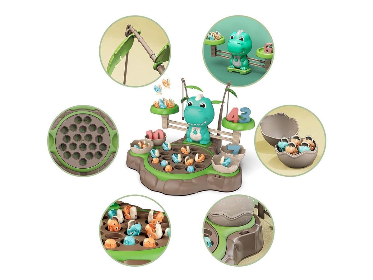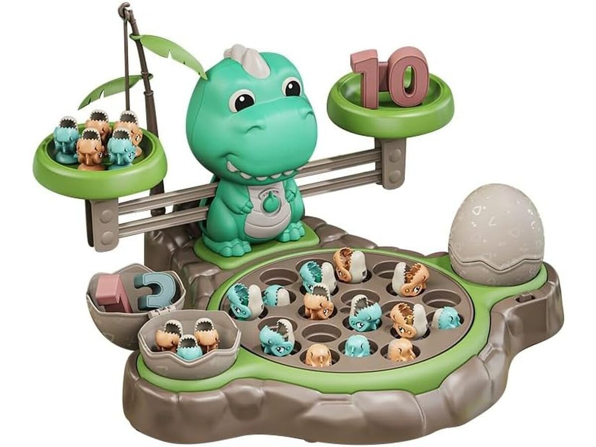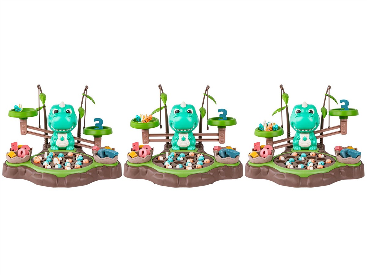 Spójrz, jakie wspaniałości kryje ta zabawka: kolorowa waga szalkowa z figurką dużego dinozura, odważniki w kształcie małych dinusiów, jeziorko do wyławiania, wędki, cyfry i karty z zadaniami zapewnią Ci długie godziny ciekawej zabawy, która doprowadzi Cię do fascynujących odkryć!