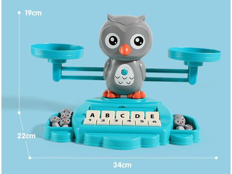 Spójrz, jakie wspaniałości kryje ta zabawka: kolorowa waga szalkowa z figurką dużej sowy, odważniki w kształcie małych sówek, cyfry i karty z zadaniami oraz fiszki do nauki języka angielskiego zapewnią Ci długie godziny ciekawej zabawy, która doprowadzi Cię do fascynujących odkryć!