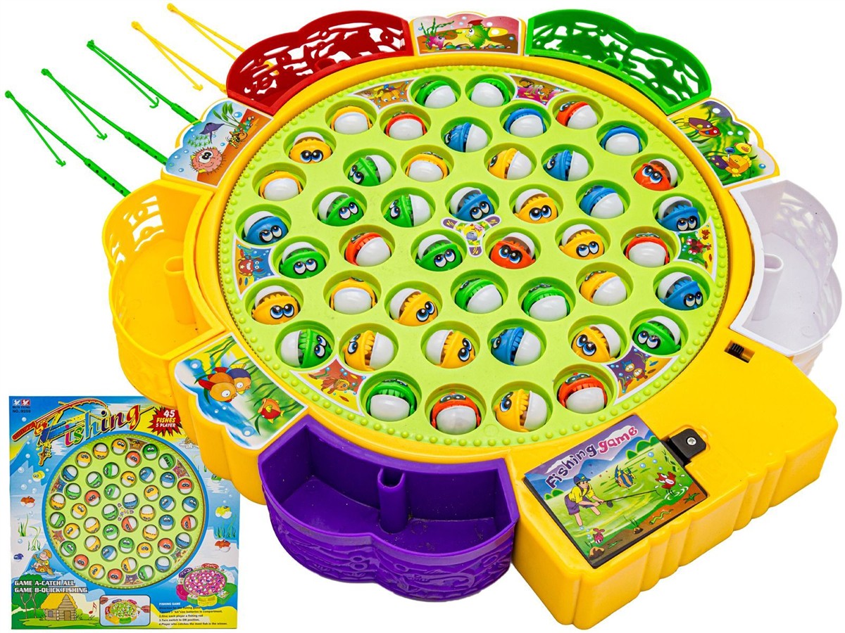 Do dzieła! Wybierz ulubiony kolor wędki i uruchom zabawkę. Jeziorka zaczną się obracać, a wraz z nimi rybki. Co jakiś czas każda rybka wynurza się z wody – szybko złap ją na wędkę! Wygrywa ten, kto złapie więcej rybek - a to czasami nie lada sztuka…