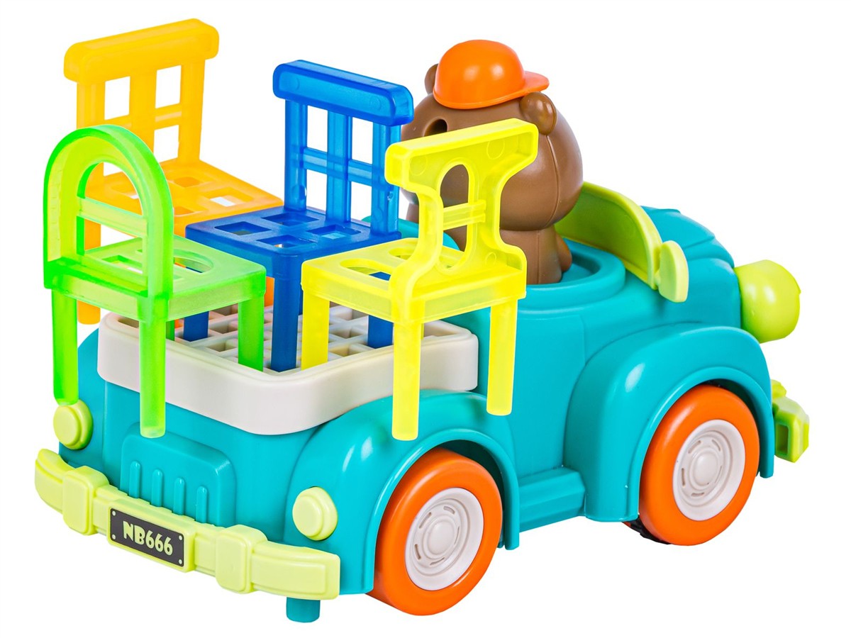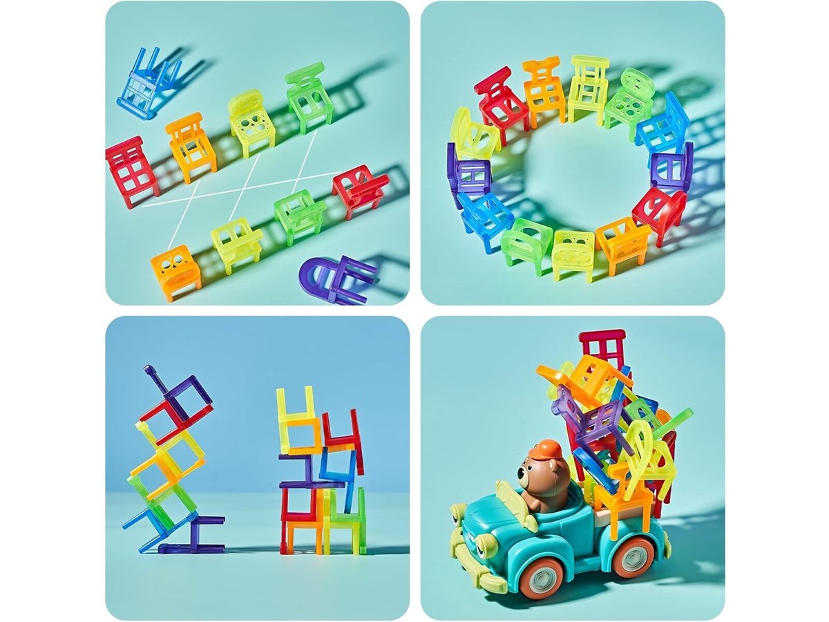 Jeżdżące autkoAutko z zestawu jeździ w kółko. Samochód nie porusza się z dużą szybkością ale układanie krzesełek na ruchomym celu mimo wszystko nie jest takie łatwe, szczególnie gdy wieża ma już swoje rozmiary :) | ![]() |