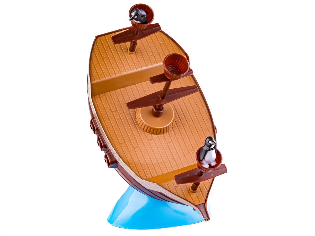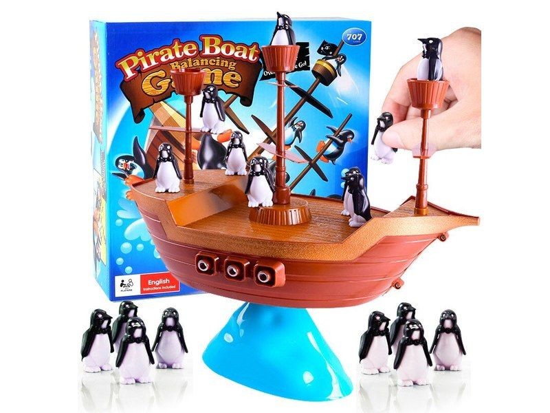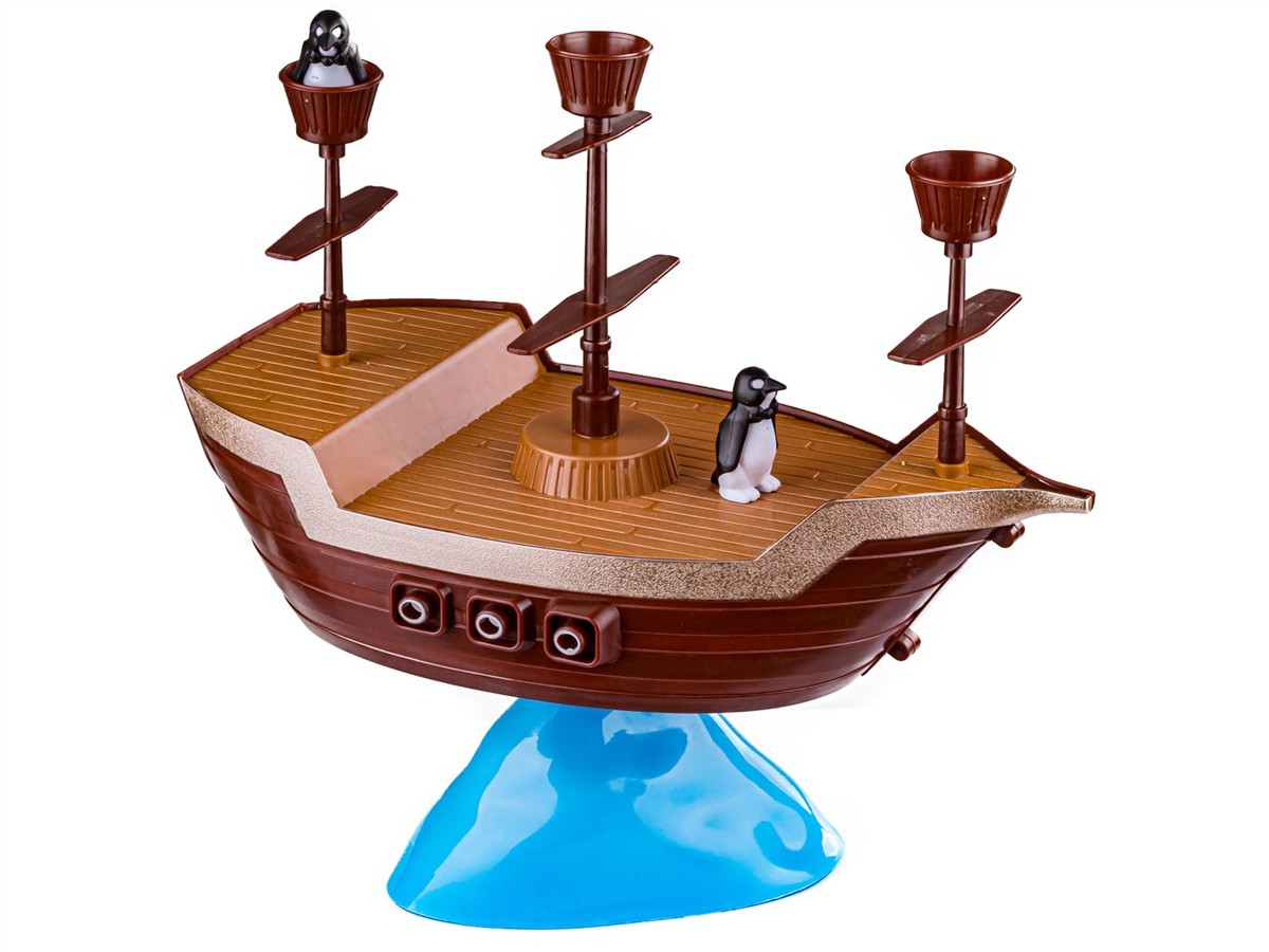 Zasady gryZasady zabawy są bardzo proste. Zaczyna najmłodszy gracz. Celem gry jest ułożenie jak największej liczby pingwinków na statku pirackim. Nie jest to jednak takie proste. Statek usytuowany jest na szczycie góry lodowej. Każda z kolejnych osób ma za zadanie umieścić kolejnego pingwinka na pokładzie statku tak aby pozostałe nie spadły do lodowatej wody. Jeśli pingwinki się przewrócą ale nie wypadną za burtę - gra toczy się dalej. Wygrywa osoba, która ustawi ostatniego pingwinka, podczas gdy pozostałe - również znajdują się na pokładzie. | ![]() |