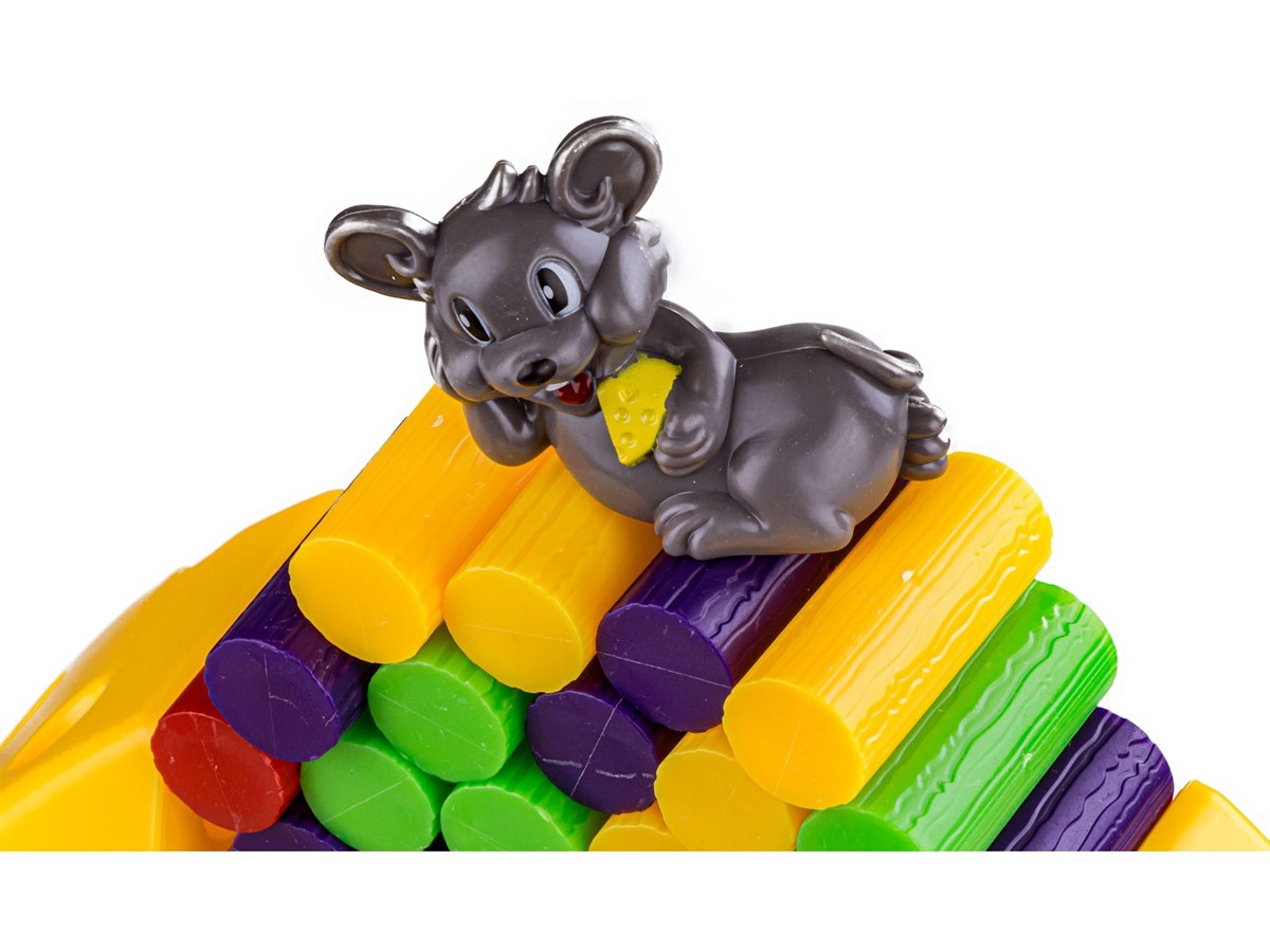Zasady gry są bardzo proste. Najpierw składamy serek z podstawą oraz układamy wieżę z kolorowych belek. Na samej górze układamy wesołą myszkę. Jest świeżo po jedzeniu - nie chcemy więc jej przeszkadzać :)