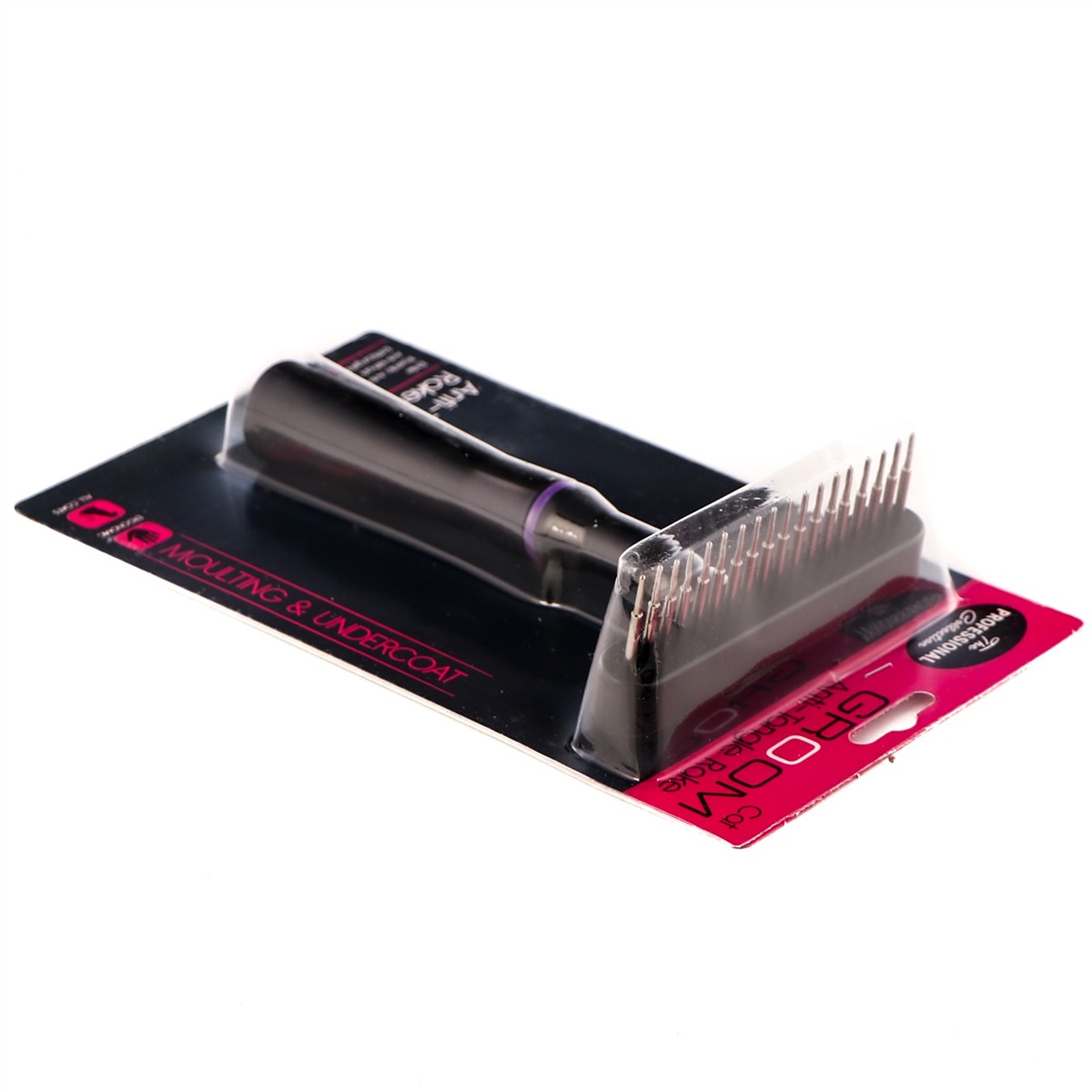 Zgrzebło Groom Anti-Tangle pomaga uporać się z uporczywymi kołtunami, matową sierścią i puszystym podszerstkiem, mając na uwadze komfort zwierzęcia. Sprężynowe zęby dopasowują się do kształtu ciała zwierzęcia, dokładnie usuwając brud i martwe włosy oraz delikatnie rozplątując splątaną sierść.