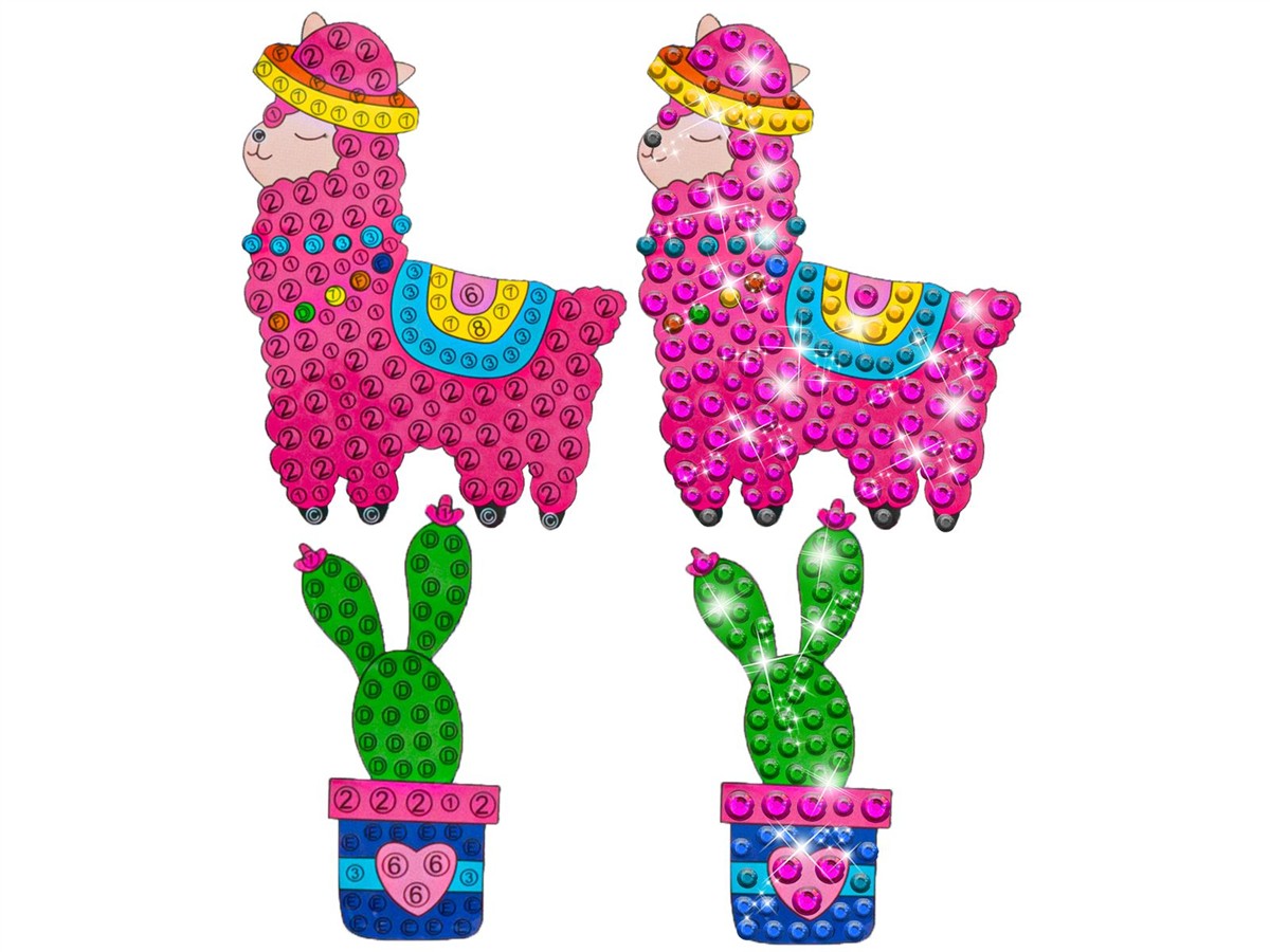 Oferowany zestaw zawiera wszystkie niezbędne elementy do wykonania gotowych układanek w tematyce wesołej lamy :) Zabawa polega na tym aby odpowiednimi, bajecznie kolorowymi diamencikami wyłożyć pola na naklejkach.