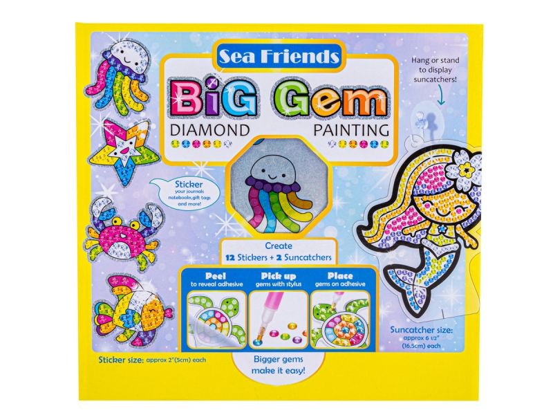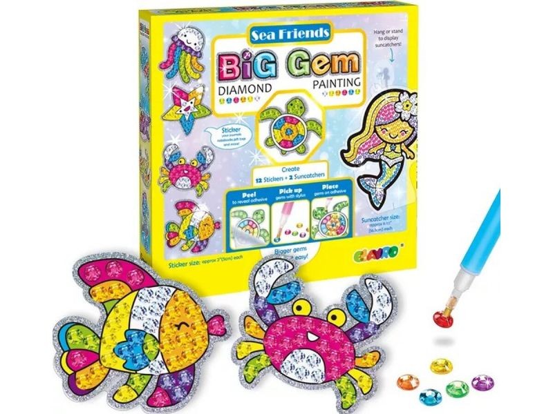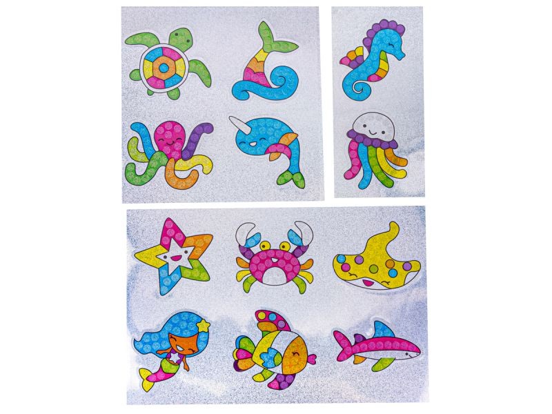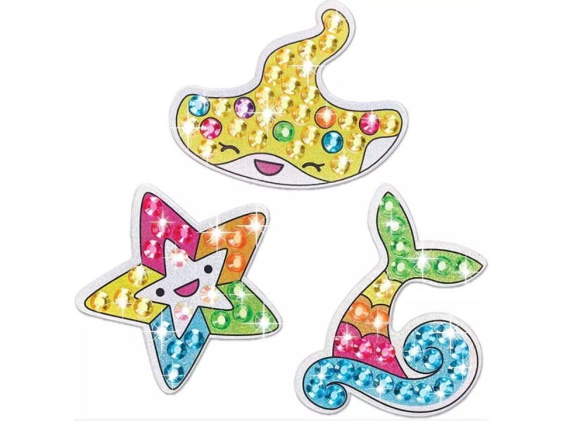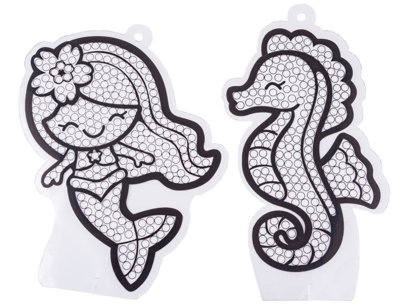 Oferowany zestaw zawiera wszystkie niezbędne elementy do wykonania gotowych układanek w tematyce podwodnych zwierząt i syrenek :) Zabawa polega na tym aby odpowiednimi, bajecznie kolorowymi diamencikami wyłożyć pola na naklejkach.