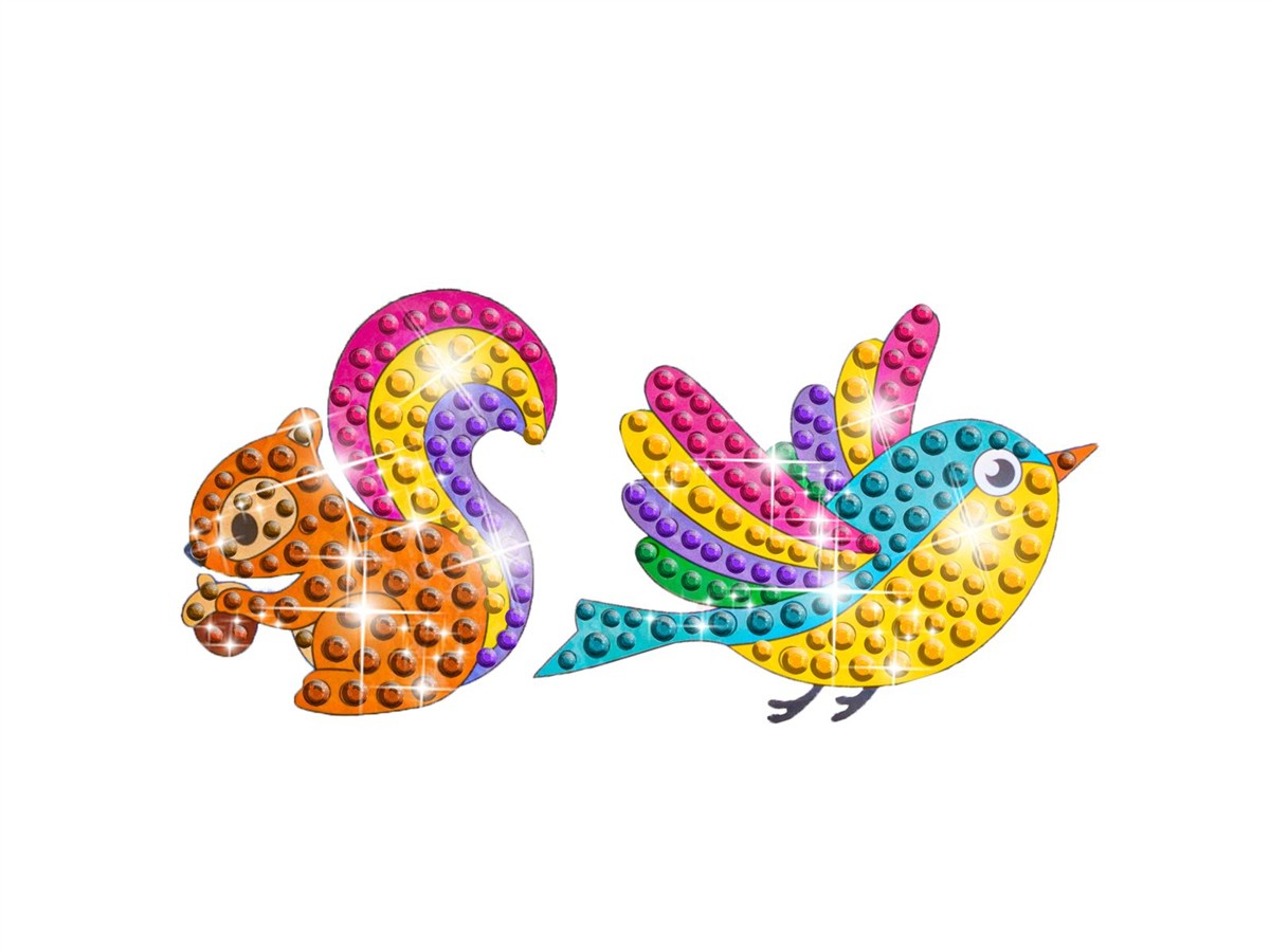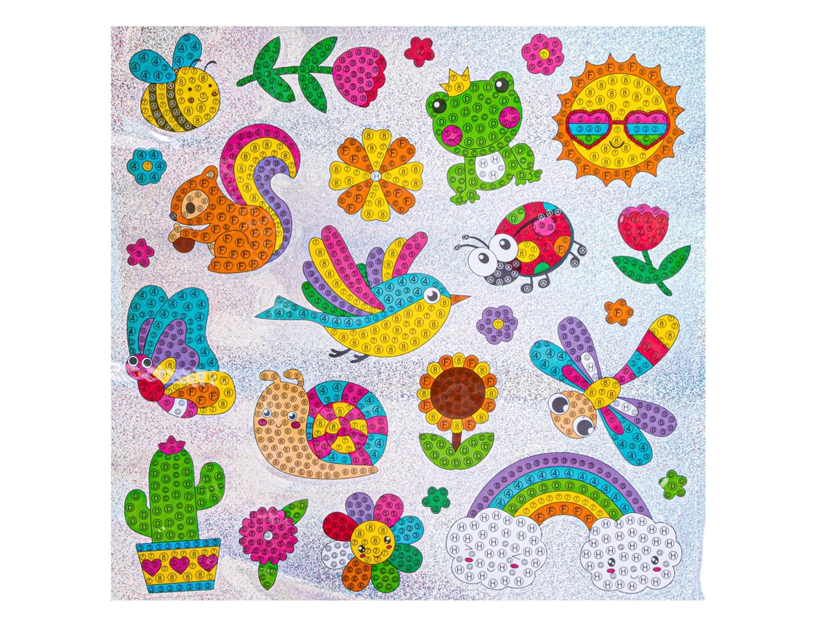 Oferowany zestaw zawiera wszystkie niezbędne elementy do wykonania gotowych układanek w tematyce tajemniczego ogrodu :) Zabawa polega na tym aby odpowiednimi, bajecznie kolorowymi diamencikami wyłożyć pola na naklejkach.