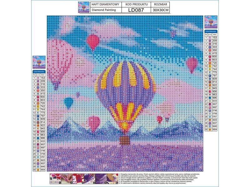 Oferowany zestaw zawiera wszystkie niezbędne elementy do wykonania gotowej układanki. Zabawa polega na tym aby odpowiednimi diamencikami wyłożyć ponumerowane płótno - tworząc w ten sposób dzieło sztuki - obraz.