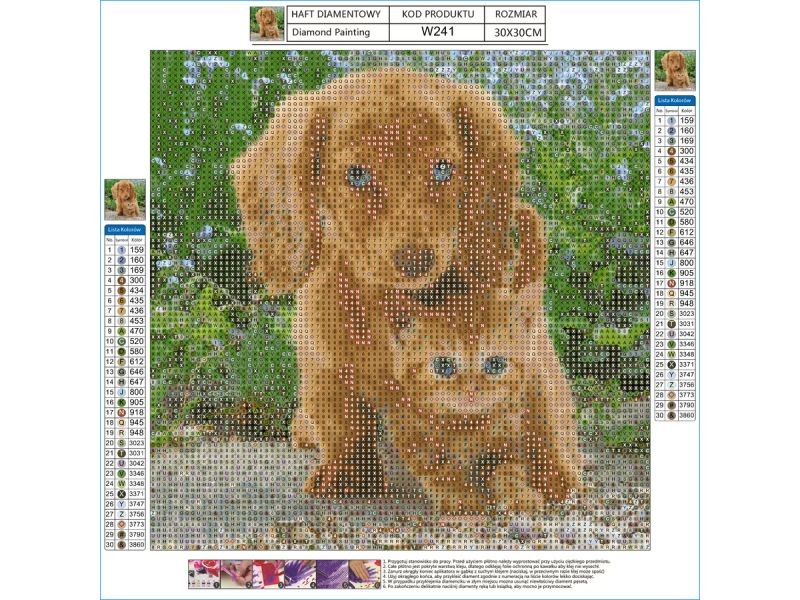 Oferowany zestaw zawiera wszystkie niezbędne elementy do wykonania gotowej układanki. Zabawa polega na tym aby odpowiednimi diamencikami wyłożyć ponumerowane płótno - tworząc w ten sposób dzieło sztuki - obraz.