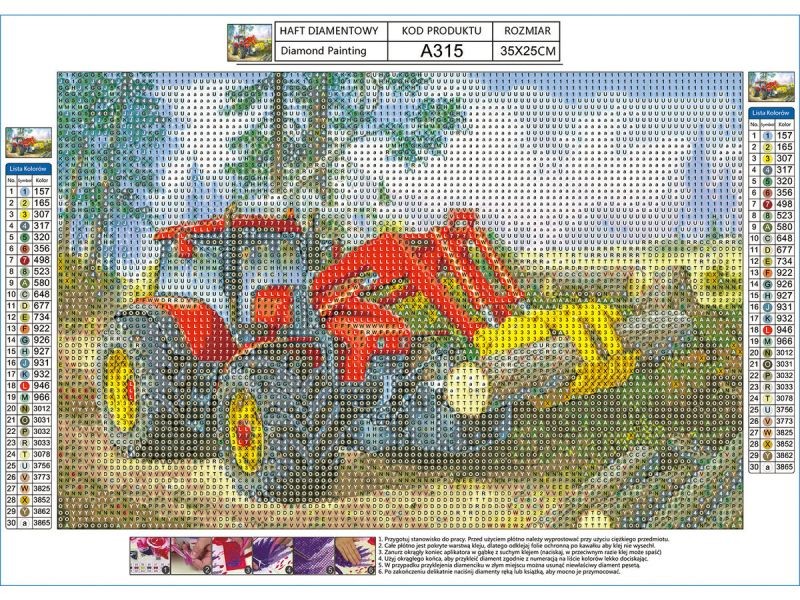 Oferowany zestaw zawiera wszystkie niezbędne elementy do wykonania gotowej układanki. Zabawa polega na tym aby odpowiednimi diamencikami wyłożyć ponumerowane płótno - tworząc w ten sposób dzieło sztuki - obraz.