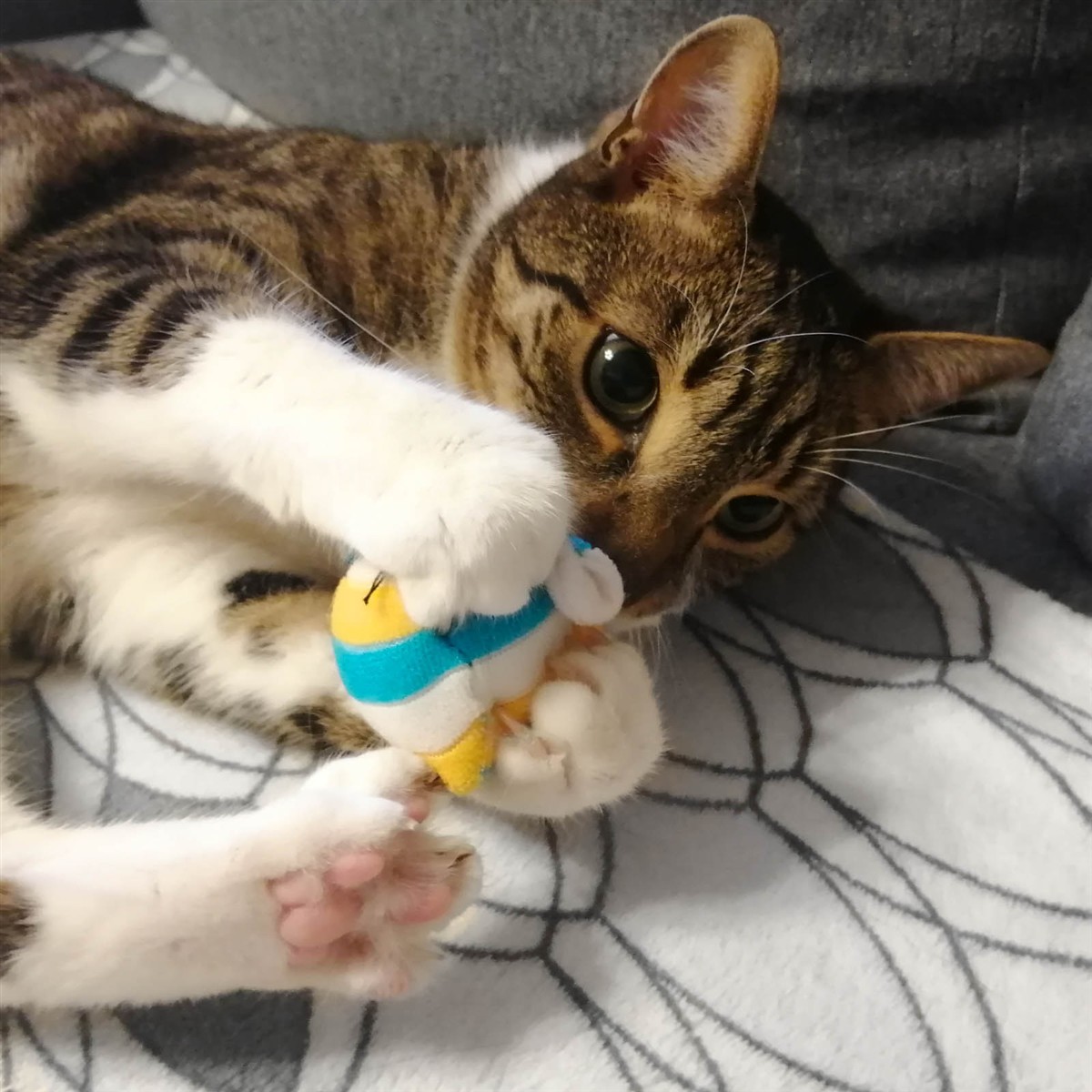 Wykonana z teksturowej tkaniny zabawka może być miliony razy ugryziona, drapana co z pewnością sprawdzi Twój zwierzak. Nie łamie się, nie przerywa, jest rozciągliwa a przy tym wytrzymała. Nie straszne jej malutkie ostre kiełki malutkich kociąt czy mamucie kły dużego kota.