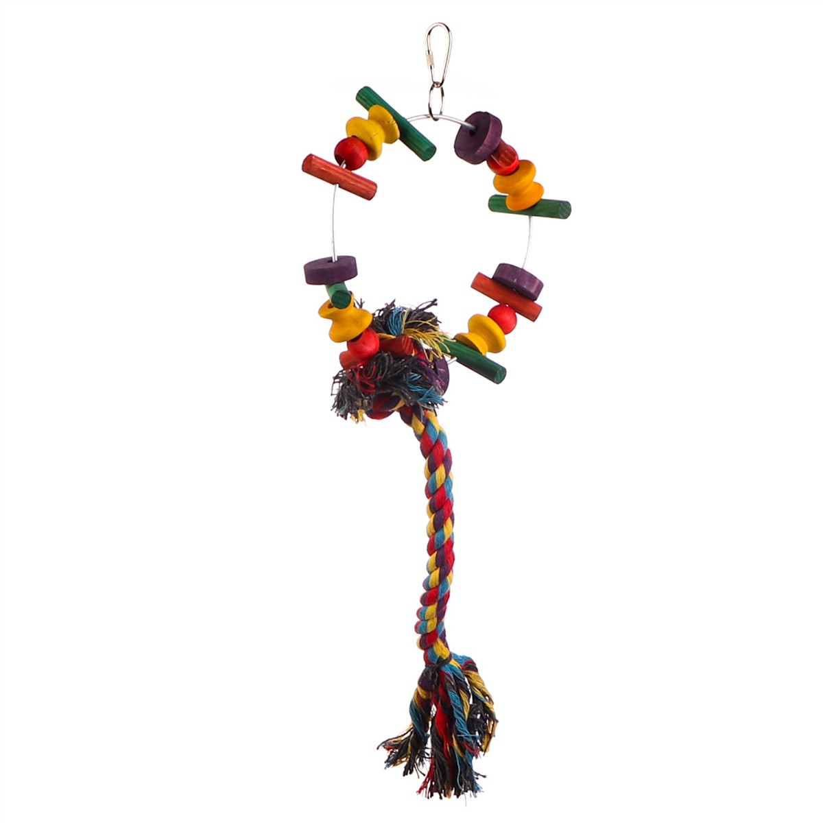 Cartwheel to kolorowa zabawka dla papug stworzona, aby zapewnić pierzastym przyjaciołom świetne źródło rozrywki oraz uwolnić ich od nudy. Wykonana z wytrzymałych drewnianym różnorodnych kształtów oraz poskręcanej bawełnianej liny.