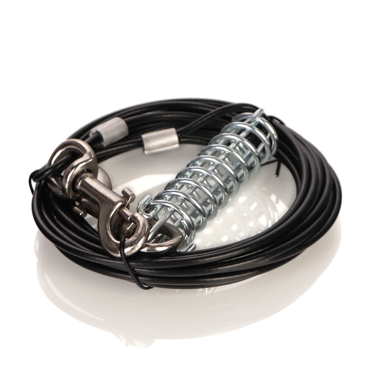 Jeśli zostawiasz psa na zewnątrz, musisz mieć pewność, że jest on bezpieczny i nie oddali się sam. Linka PetGear Tie Out Cable składa się z mocnej stalowej linki pokrytej odporną na warunki atmosferyczne powłoką z tworzywa sztucznego, co pomaga utrzymać ją w stanie użyteczności przez znacznie dłuższy czas.