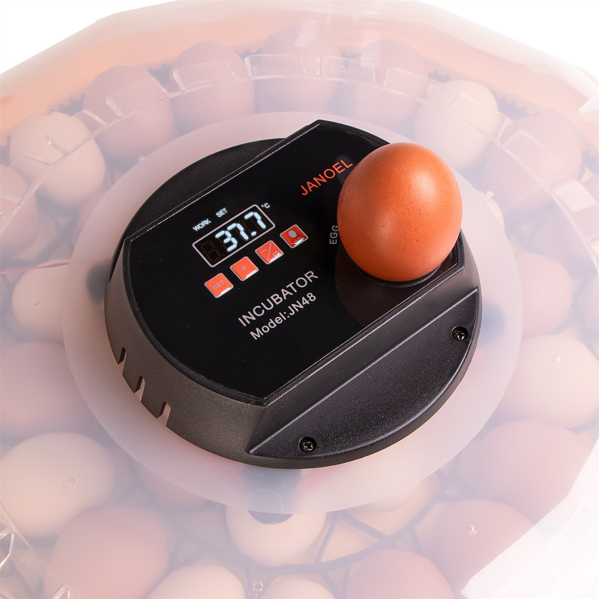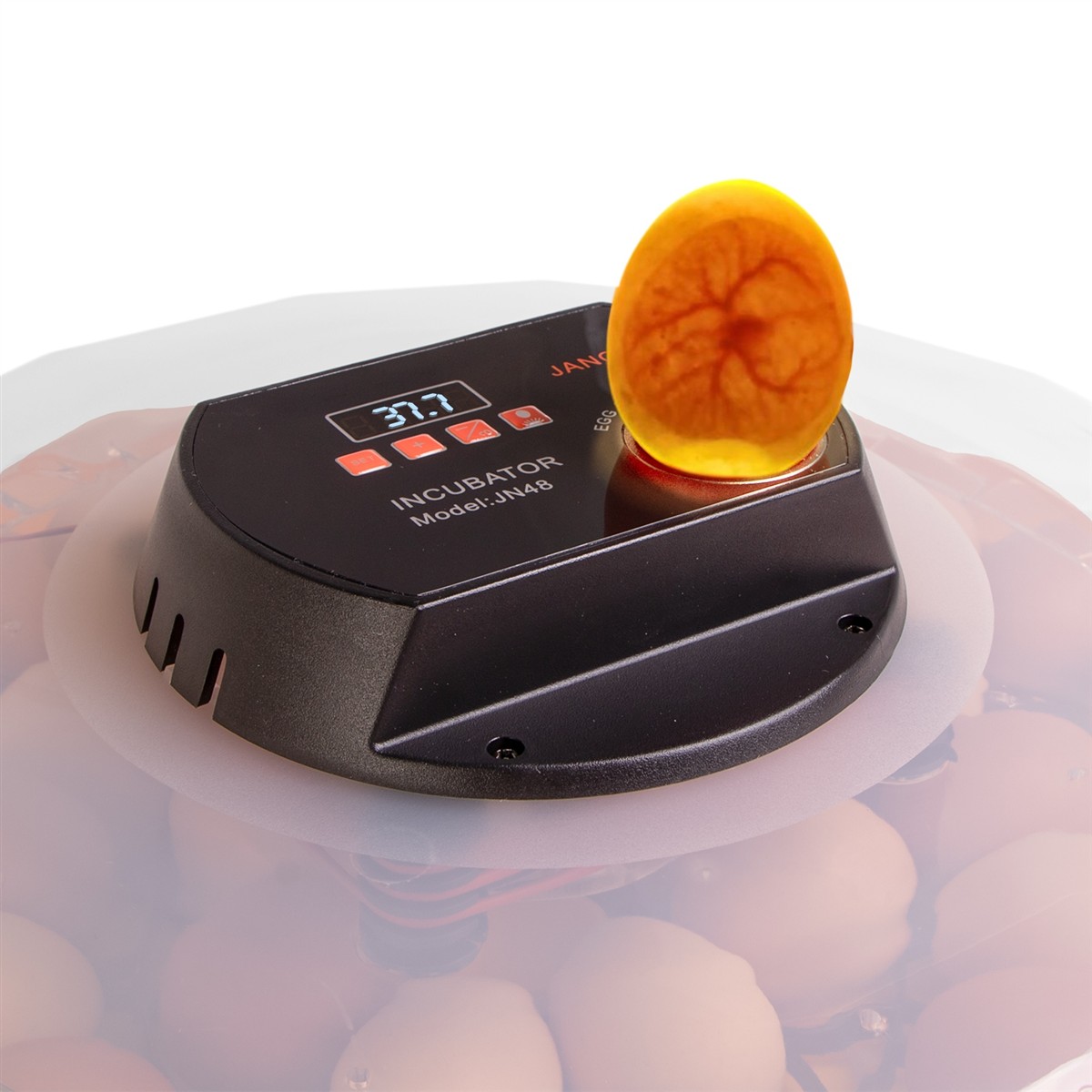 Na górnej obudowie znajduje się prześwietlarka jaj (owoskop). Umożliwia to monitorowanie stanu rozwoju zwierzęcia.