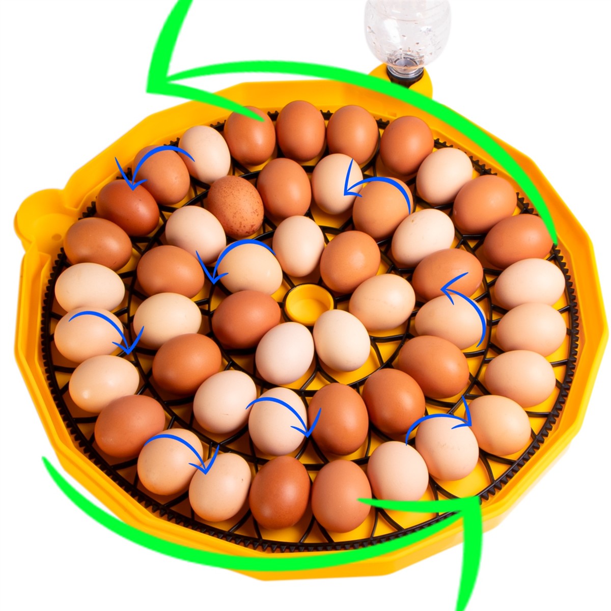Wylęgarnia posiada wbudowany silniczek, który będzie poruszał kratką wewnątrz pojemnika. Tym samym jajka będą się obracać. Automatyczne obracanie trwa 10 - 15 sekund i załącza się co dwie godziny.