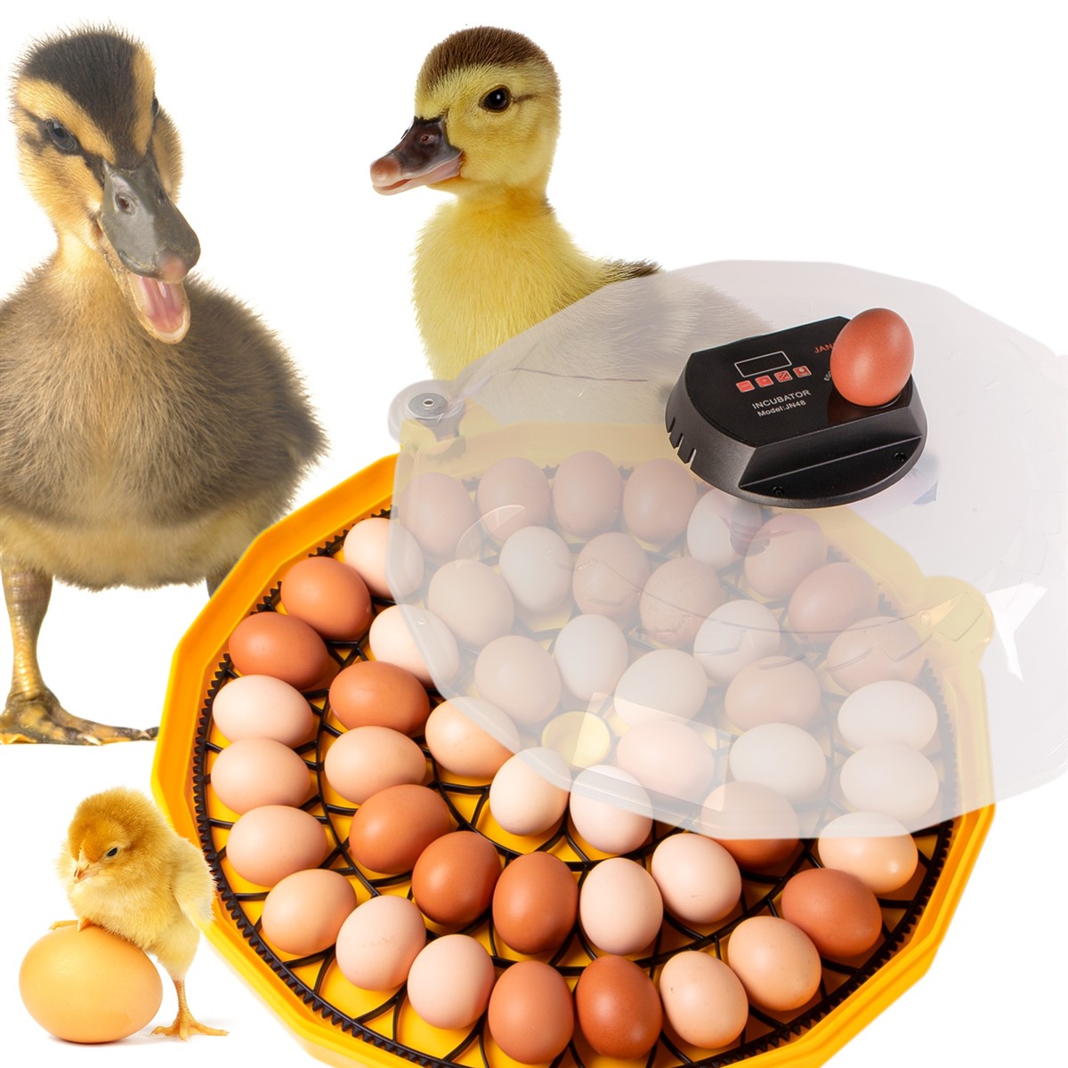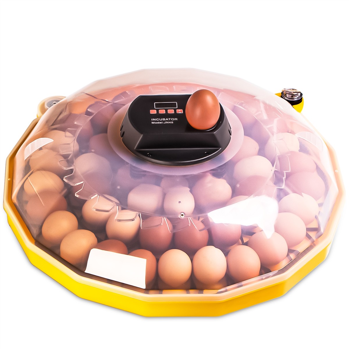 W pełni automatyczna wylęgarnia jaj. Inkubator jaj wyposażony jest w ogrzewanie z termostatem, który jest w pełni programowalne, termo-obieg, samoczynne automatyczne obracanie jej, system dozowania wody z butelki i prześwietlarkę. W inkubatorze możesz umieścić dowolne jajka, nie większe od gęsich (kacze, kurze, gęsie, przepiórcze itp. oraz jaja gadów).