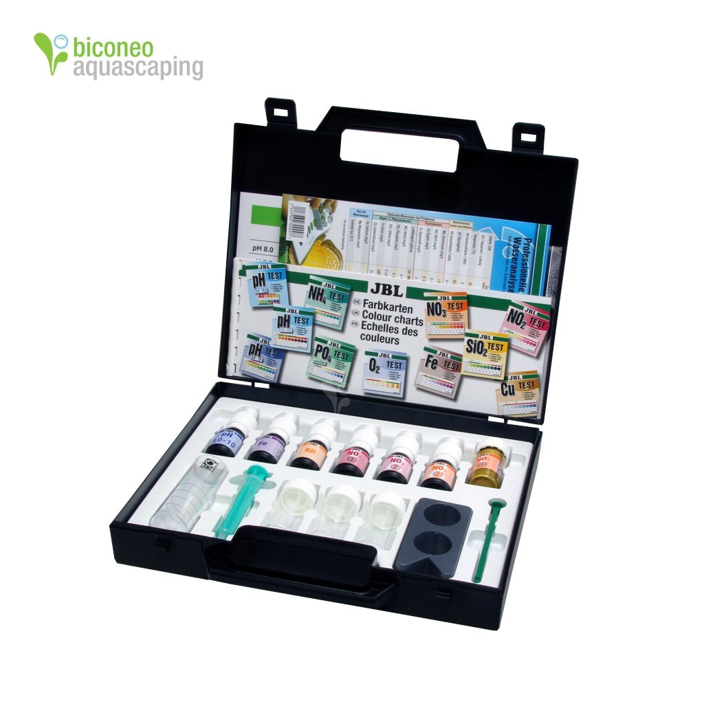 JBL Combi Set to praktyczny zestaw testów akwarystycznych mieszczących się w wygodnej walizce. Testy te pozwalają ustalić wartości parametrów takich jak pH, KH, NO2, NO3, Fe. Dodatkowo dołączono tabelę do przeliczania poziomu CO2 w zawartego w wodzie. Kontrola tych parametrów jest podstawą i kluczem do utrzymania ładnego wyglądu roślin oraz dobrej kondycji mieszkanców akwarium.