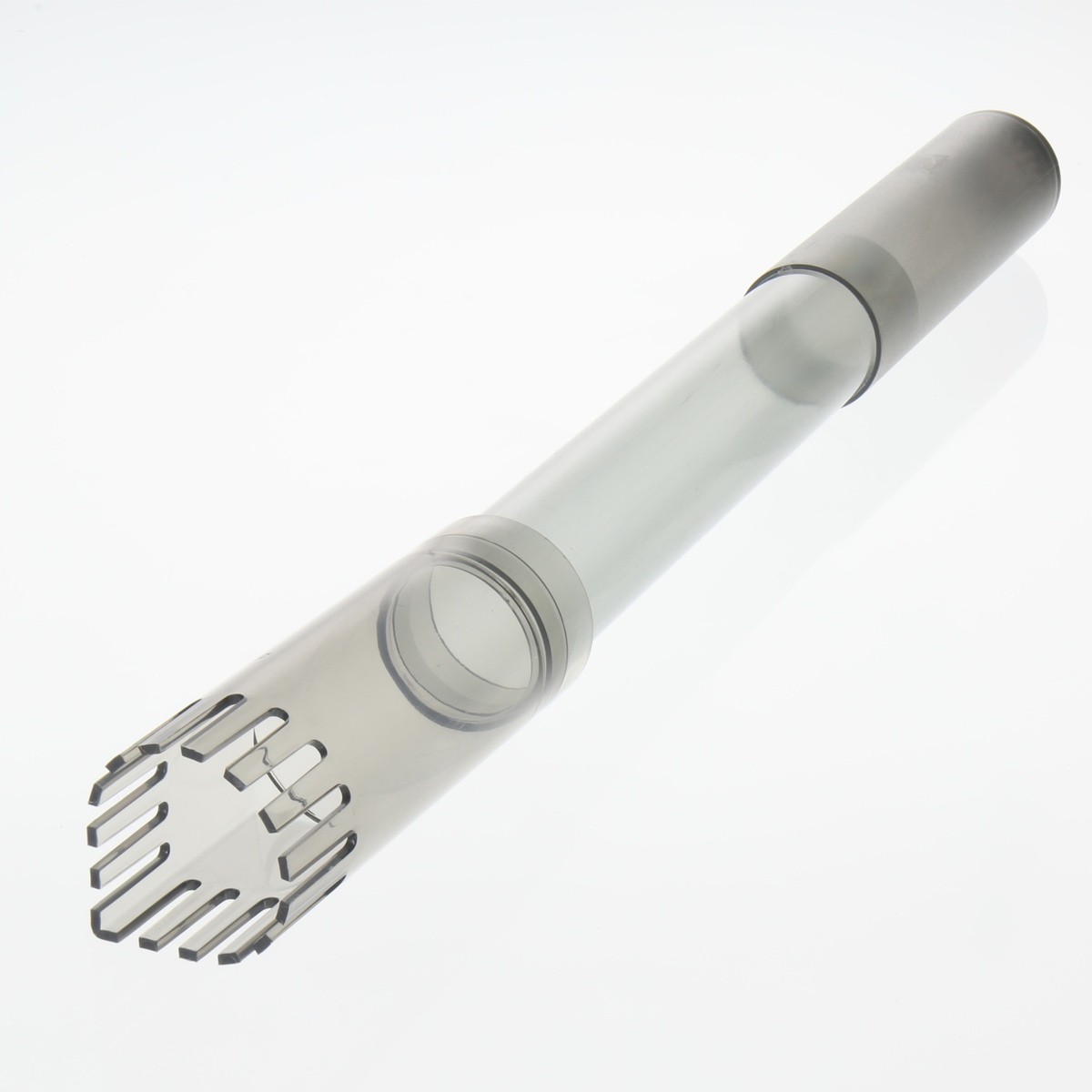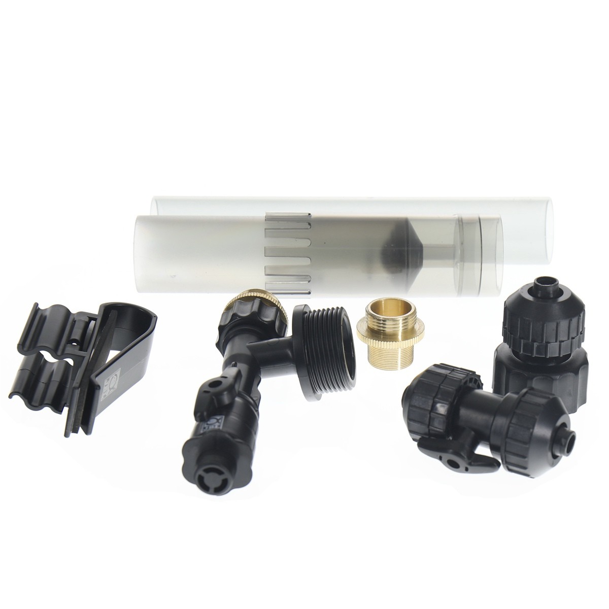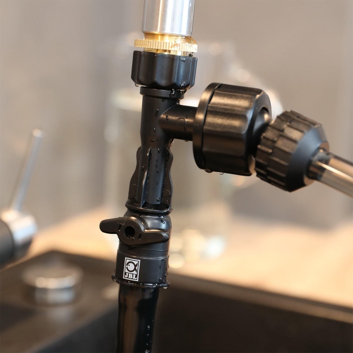 - Automatyczne urządzenie zasysające: Wytworzenie ssania przez strumień wody z kranu (także jeżeli umywalka stoi wyżej niż akwarium). Czyszczenie trudno dostępnych miejsc za pomocą odmulacza: Okrągły przekrój z narożnikiem