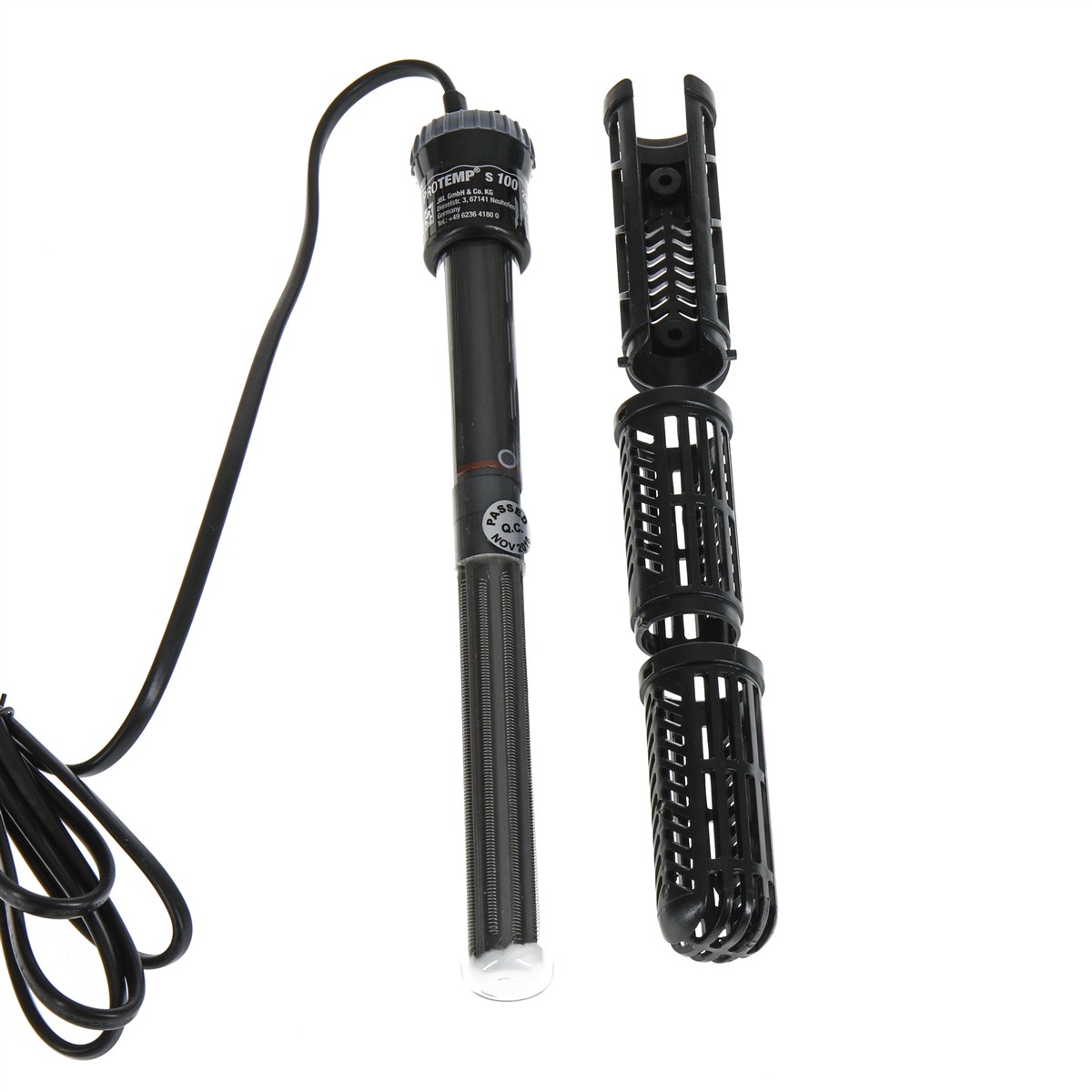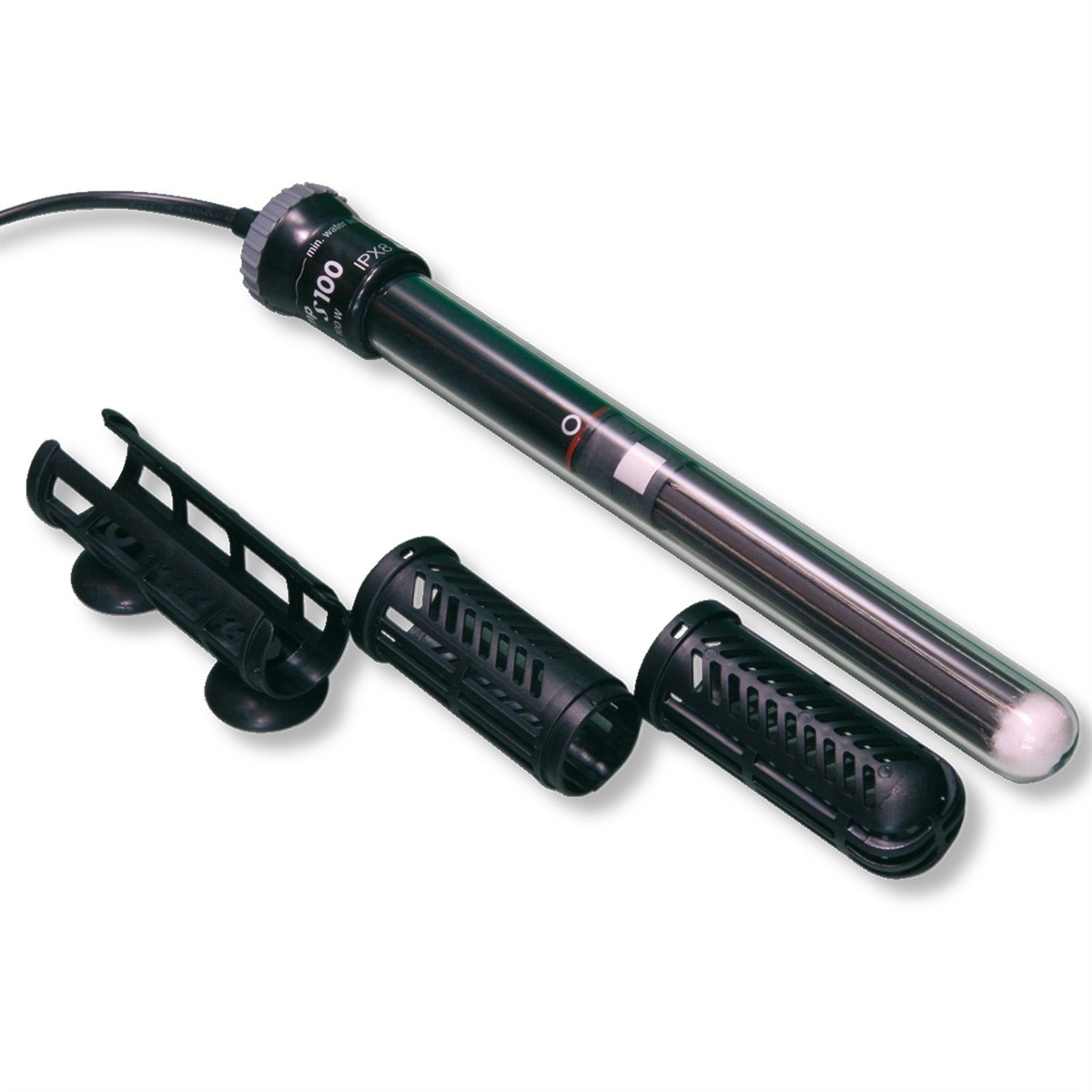 Umieszczenie w ochronnym koszyku zapobiega poparzeniu się ryb. Grzałka jest wodoszczelna, możliwość zanurzenia do 100 cm i jest bardzo stabilna dzięki 2 mm bezpiecznemu szkłu kwarcowemu. Jeżeli der poziom wody spada lub grzałkę wyjmuje się z wody, zabezpieczający automatyczny wyłącznik cieplny chroniąc przed przegrzaniem, odcina dopływ prądu. Grzałka ma Certyfikat TÜV.