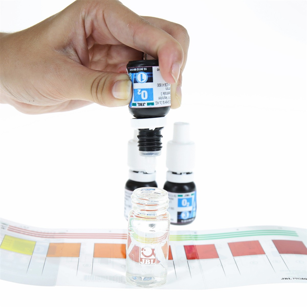 Dlaczego testować? Możliwie niezmienne utrzymywanie właściwej wartości O2 jest ważnym warunkiem dla dobrego samopoczucia mieszkańców akwarium i stawu ogrodowego, oraz rozwoju roślin wodnych. Tlen jest "eliksirem życia" wszystkich organizmów zwierzęcych. Wszystkie zwierzęta w akwarium i stawie potrzebują tlenu do oddychania. Ale także ci raczej "niewidzialni pomocnicy" w akwarium i stawie, bakterie rozkładające szkodliwe substancje są zależne od wystarczającej zawartości tlenu, aby móc wykonywać swoją pożyteczną działalność. W akwariach i stawach o małej obsadzie roślinności lub w ogóle bez roślin oraz w akwariach morskich należy utrzymywać tlen zawsze na odpowiednim poziomie równowagi dzięki urządzeniom technicznym. Woda pobiera tlen przez swoją powierzchnię. Im większa cyrkulacja na powierzchni, tym więcej tlenu pobiera się. Przy obumierających glonach i przy stosowaniu wielu lekarstw należy podwyższyć zawartość tlenu w wodzie przez napowietrzanie.